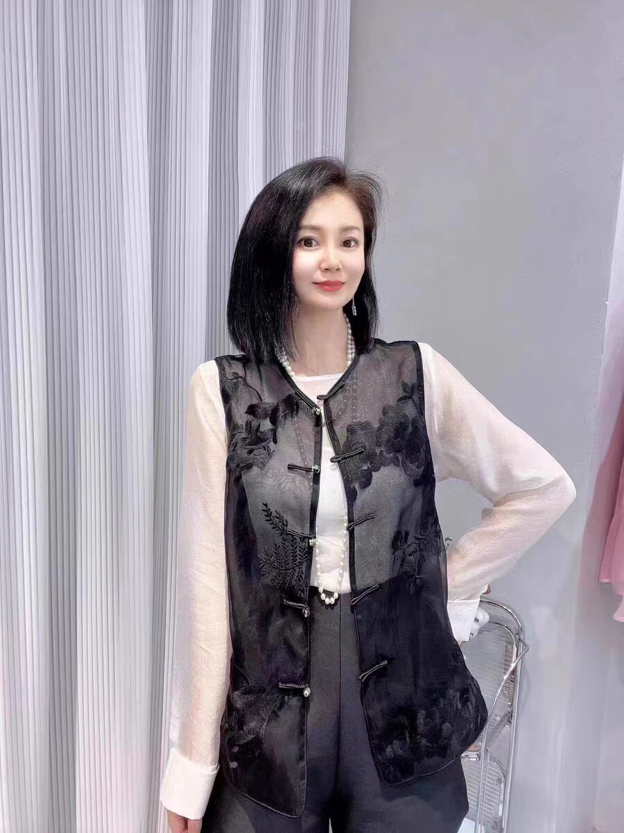 产品名称 | Product name: 重工真丝刺绣外套女桑蚕丝欧根纱中式马甲背心薄款