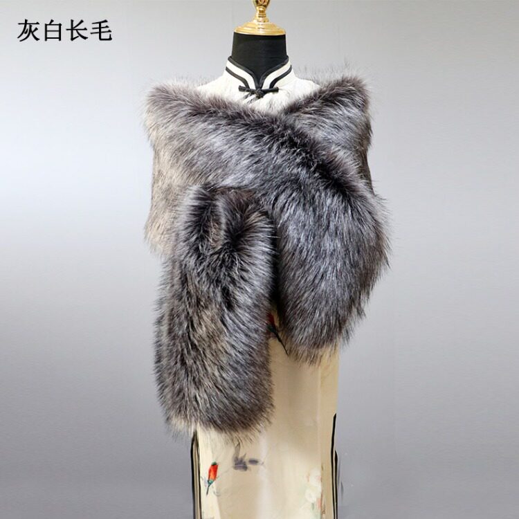 产品名称 | Product name: 毛毛绒旗袍披肩仿皮草大披肩舞台晚宴礼服新娘斗篷围巾女秋冬网红