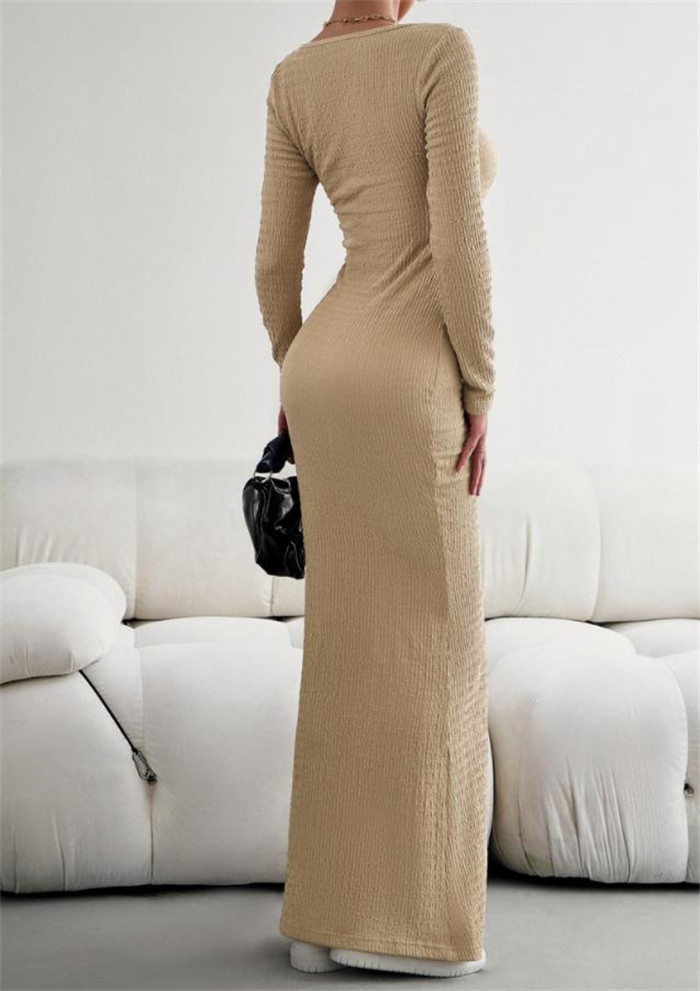 产品名称 | Product name: 欧美性感修身针织长袖连衣裙长裙 Sexy Knit Bodycon Maxi Dress
