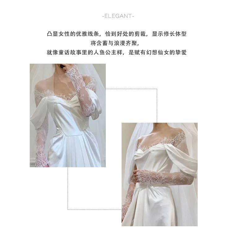 产品名称 | Product name: 法式缎面轻婚纱2022新款新娘高级质感一字肩小个子轻礼服拖尾夏季