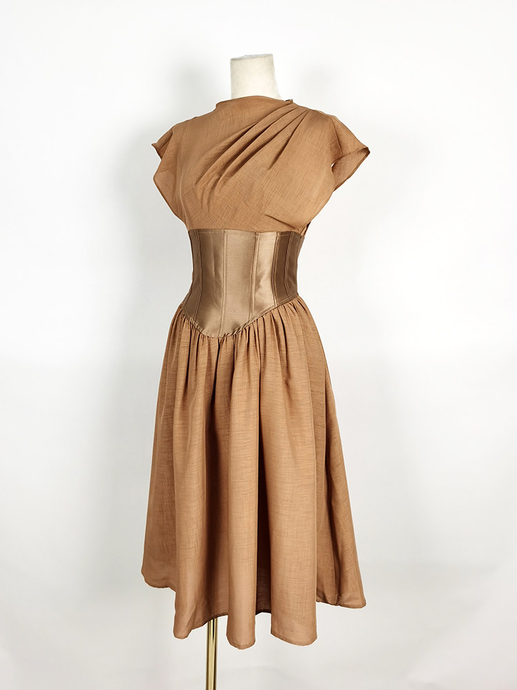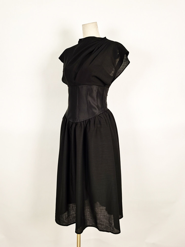 产品名称 | Product name: 小众腰封小礼服设计师新款亚麻料黑色高腰无袖气质长连衣裙女