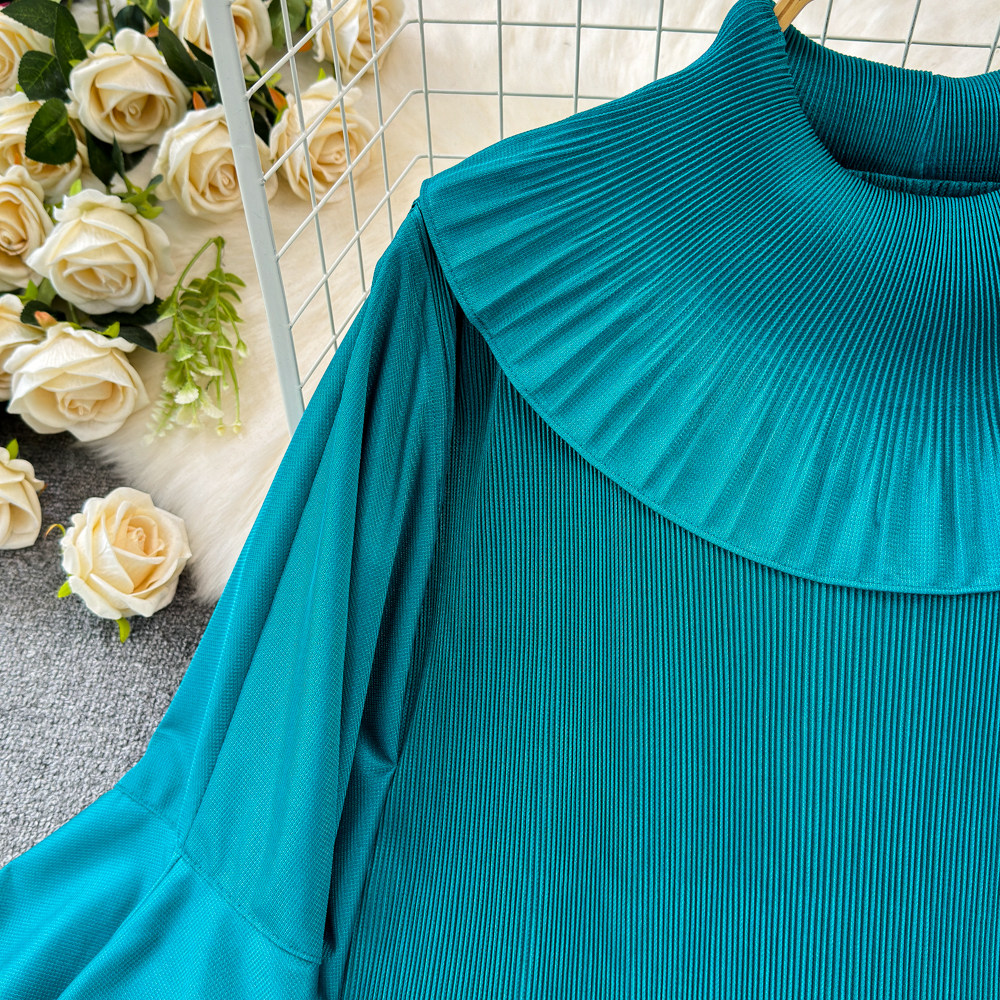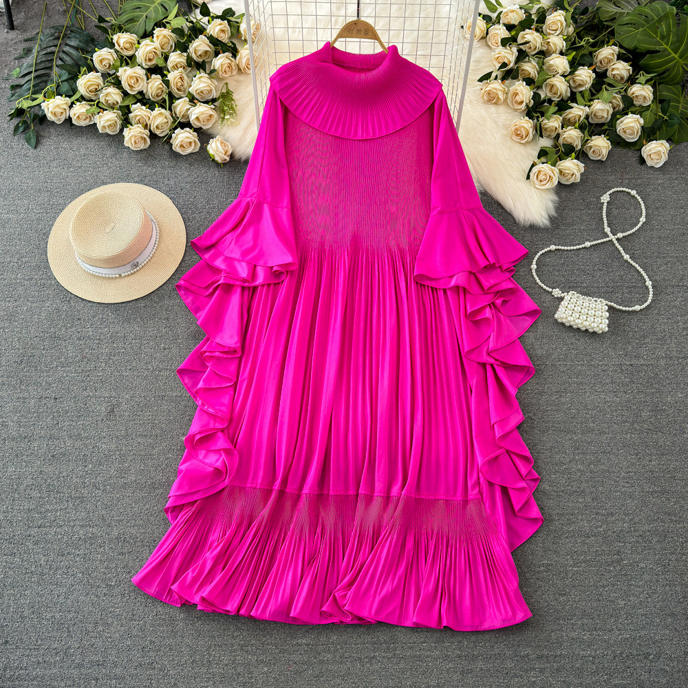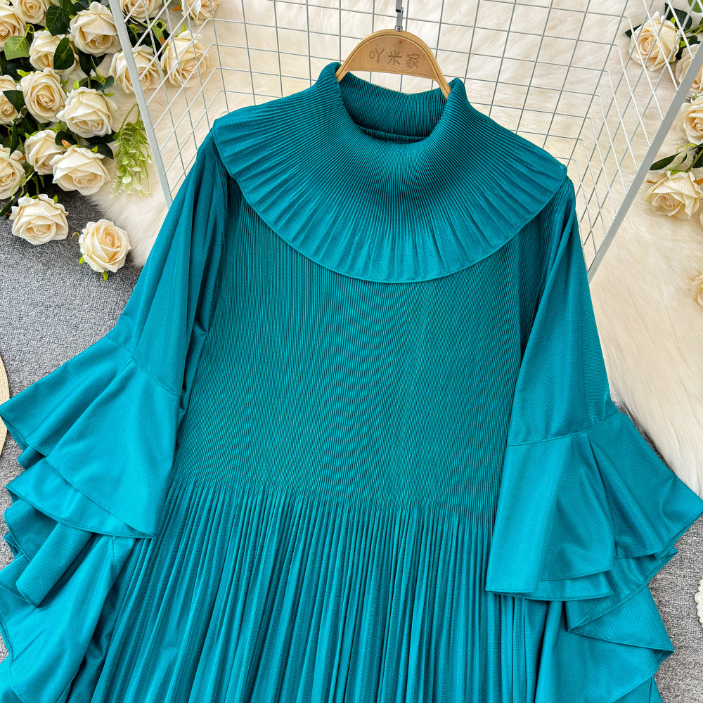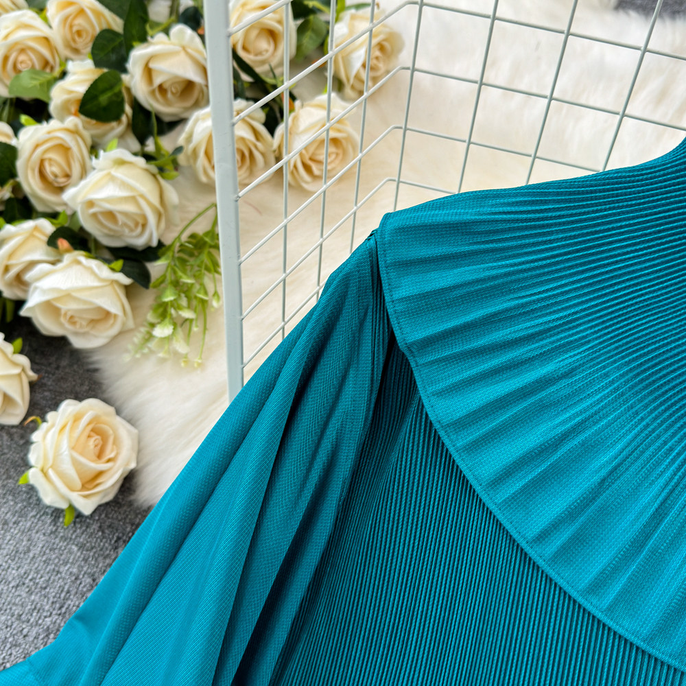 产品名称 | Product name: 高级感轻奢名媛三宅褶皱飞飞袖宽松显瘦a字连衣裙优雅气质长裙子