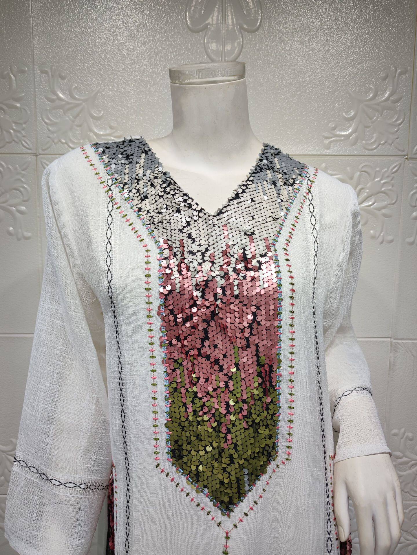 产品名称 | Product name: 中东迪拜沙特旅游阿拉伯清真斋节长袍女珠亮片绣花时尚连衣裙女装