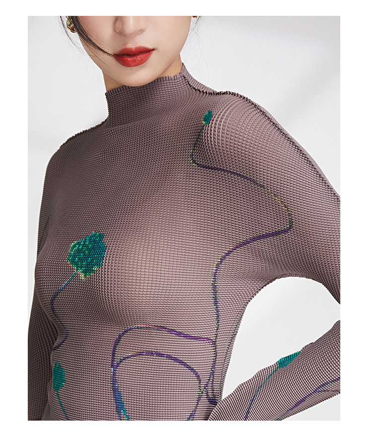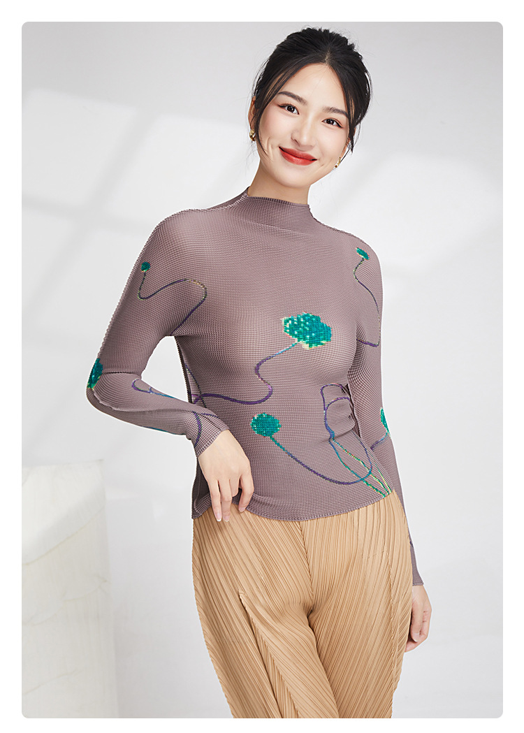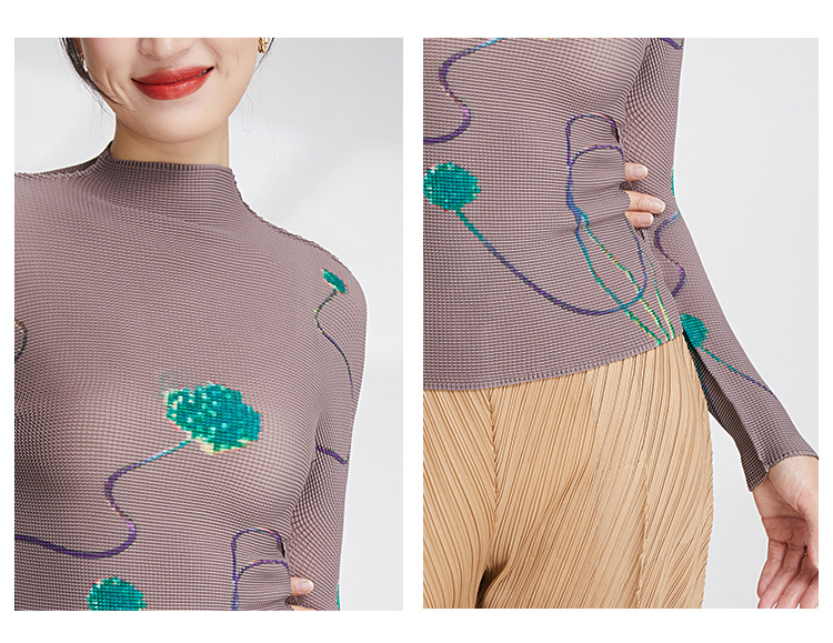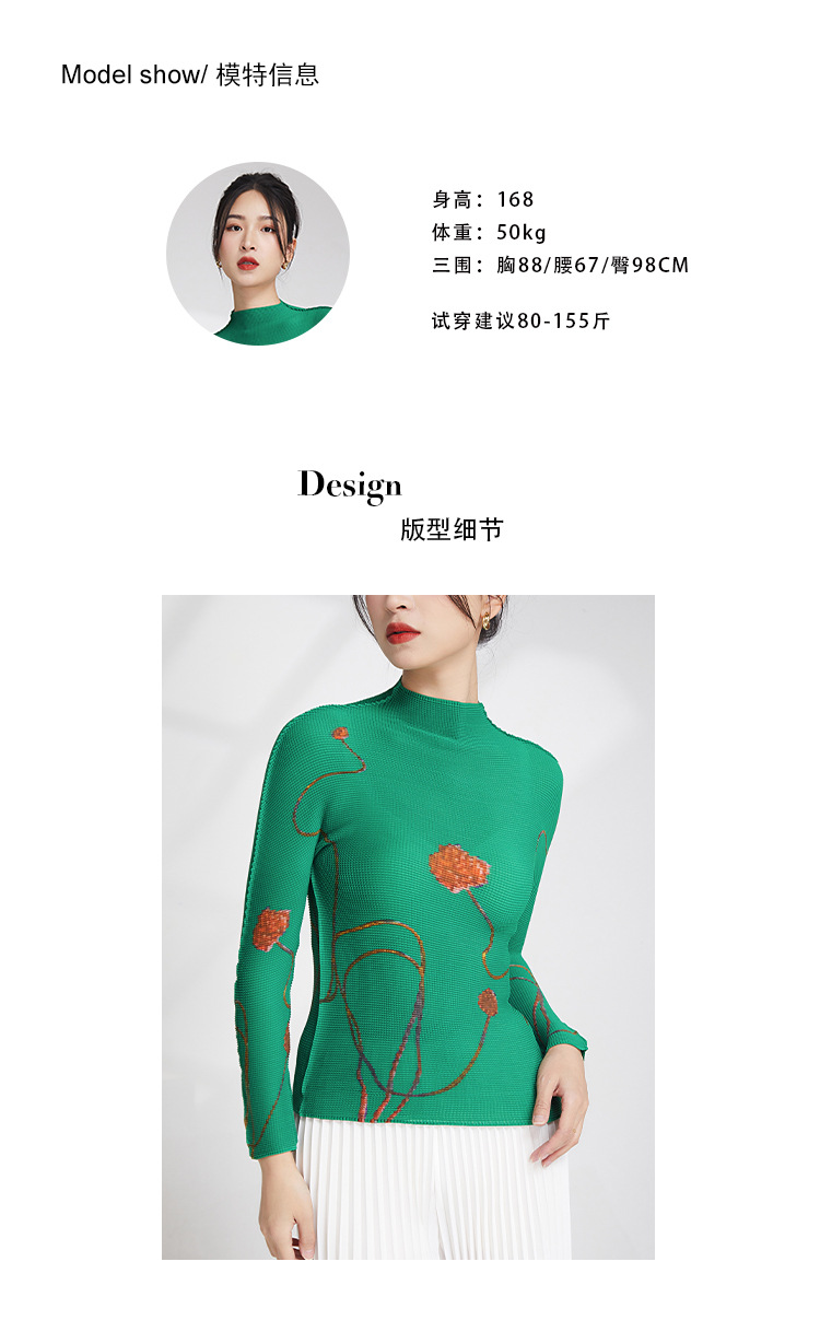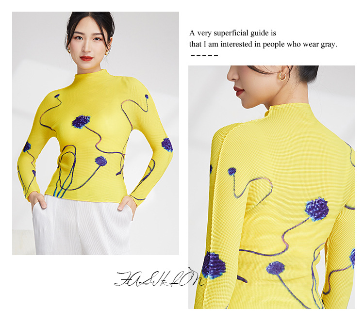 产品名称 | Product name: 23年春季新款三宅褶皱上衣气质高领印花修身显瘦ins风T恤