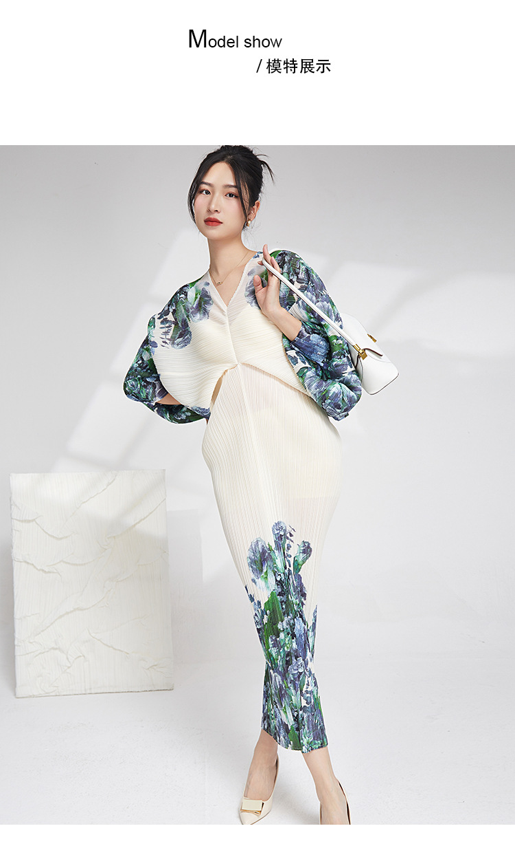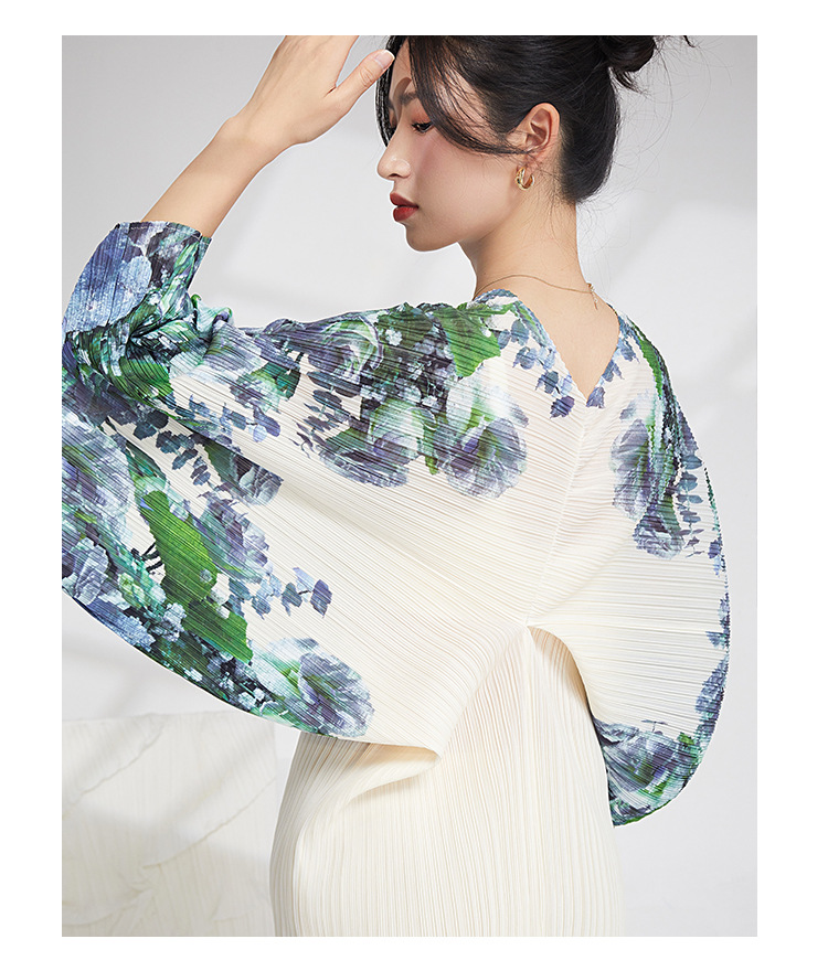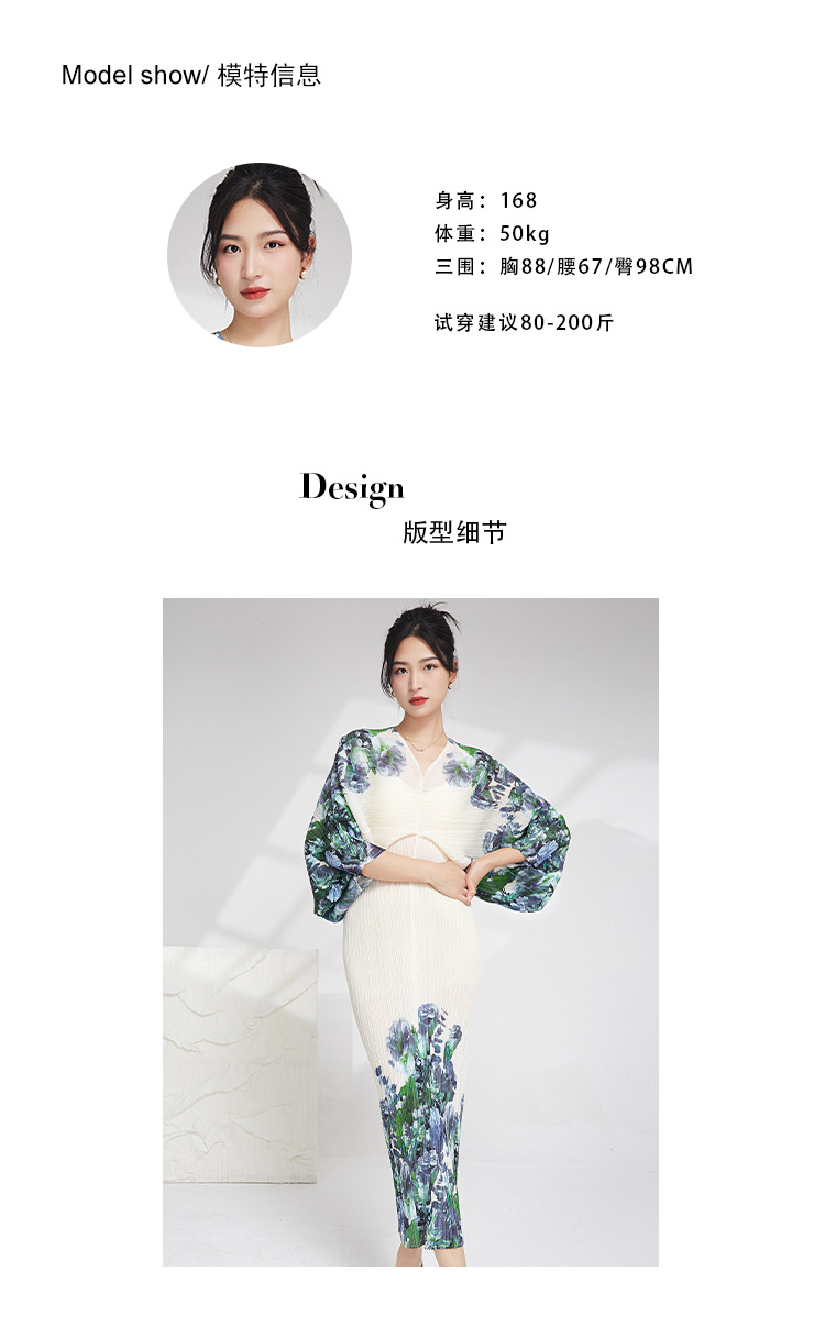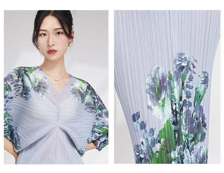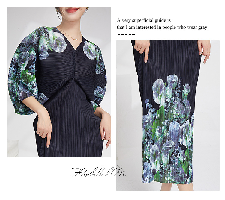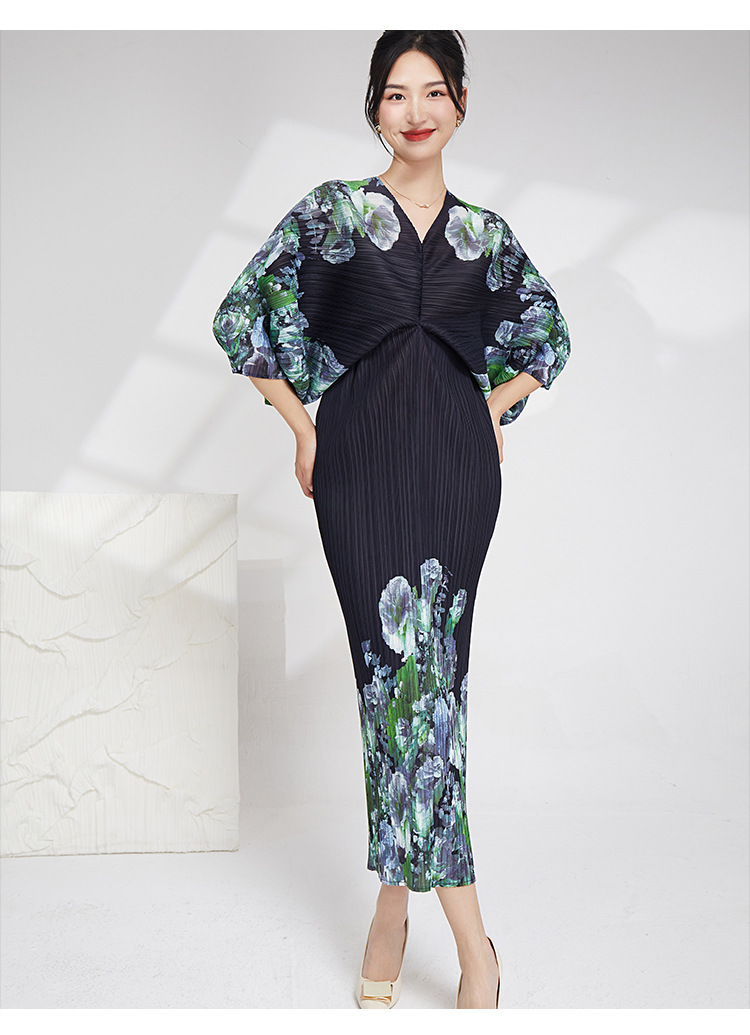 产品名称 | Product name: 三宅褶皱大码连衣裙女宽松遮肉显瘦印花减龄蝙蝠袖长款直筒裙洋