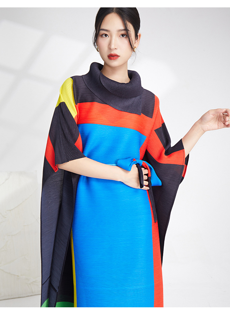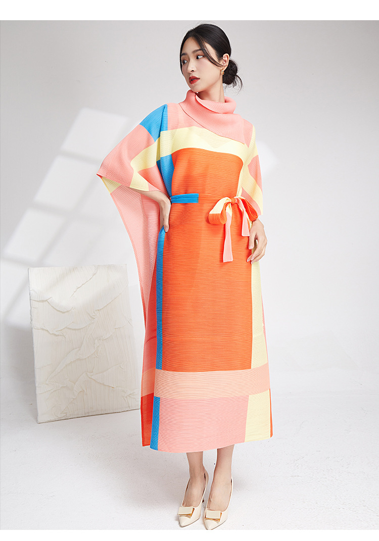 产品名称 | Product name: 设计感小众连衣裙女装装宽松大码不规则蝙蝠袖系带高贵褶皱长裙子