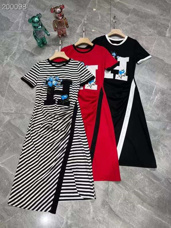 黑/æ¡çº¹/红 S~XL —一2023æ˜¥å¤æ–°æ¬¾é‡å·¥åˆºç»£H花朵时尚撞色圆领æ¡çº¹S曲线女人味修身开å‰è¿žè¡£è£™ 时尚与舒适为一体,简约大气~裙身é€ç€æ¸©å©‰è€ŒçŸ¥æ€§çš„å°å¥³äººæ°”æ¯ï¼Œå¸æ™´çš„腰间弹力抽褶和è½è½å¤§æ–¹çš„æ”¶æ‘†ï¼Œçªå‡ºçº¤ç»†çš„腰型,优雅~大方~性感,显高显瘦~