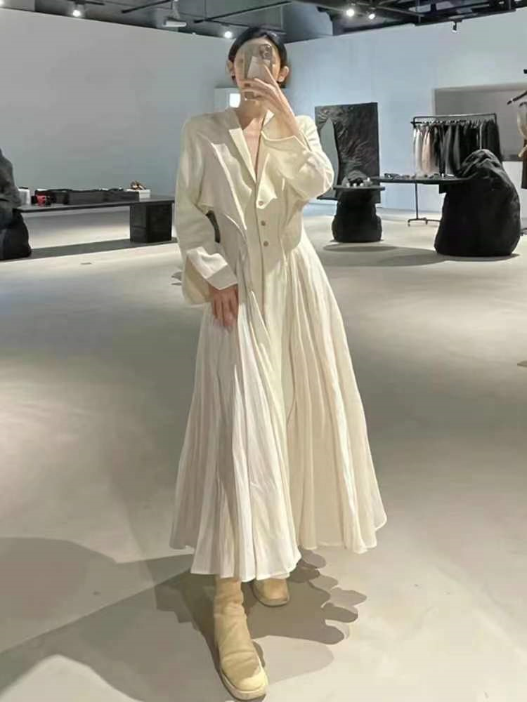产品名称 | Product name: 法式高级感拼接白色西装连衣裙女2023年新款春秋大摆收腰显瘦长裙