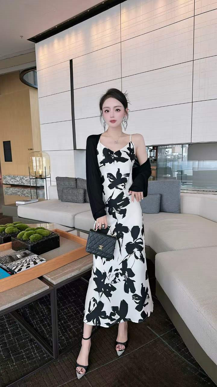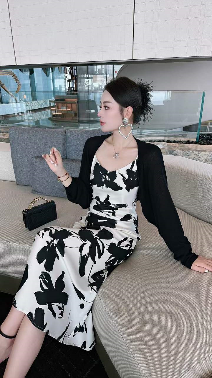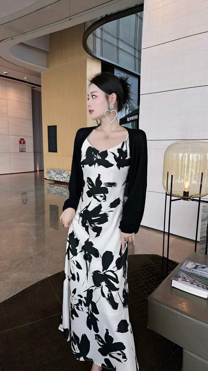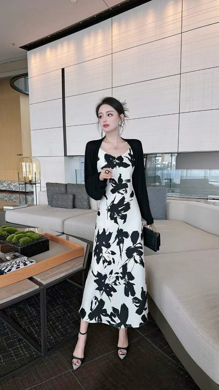 产品名称 | Product name: 百搭针织披肩小外套+醋酸麻印花吊带连衣裙2pcs