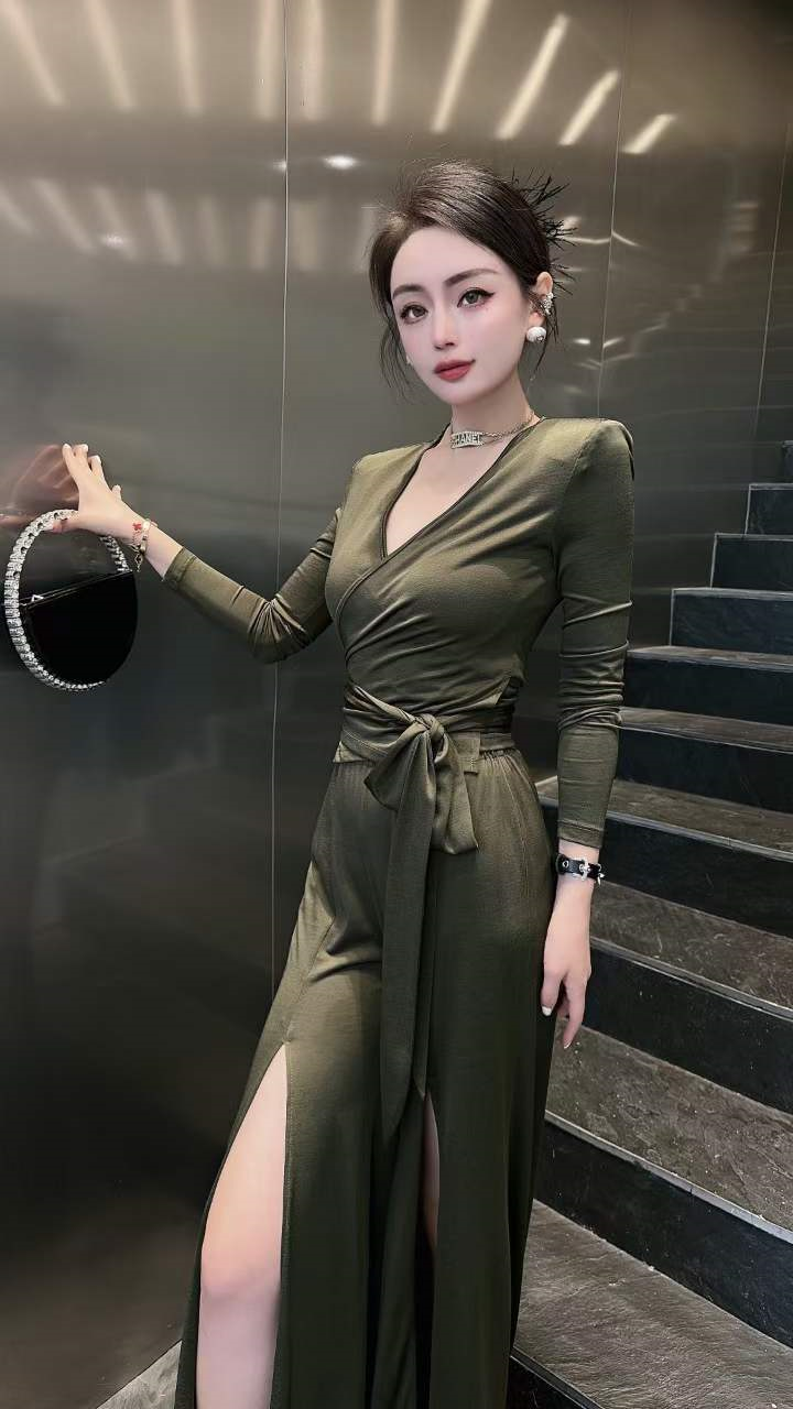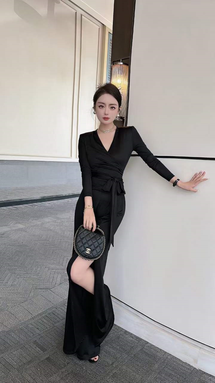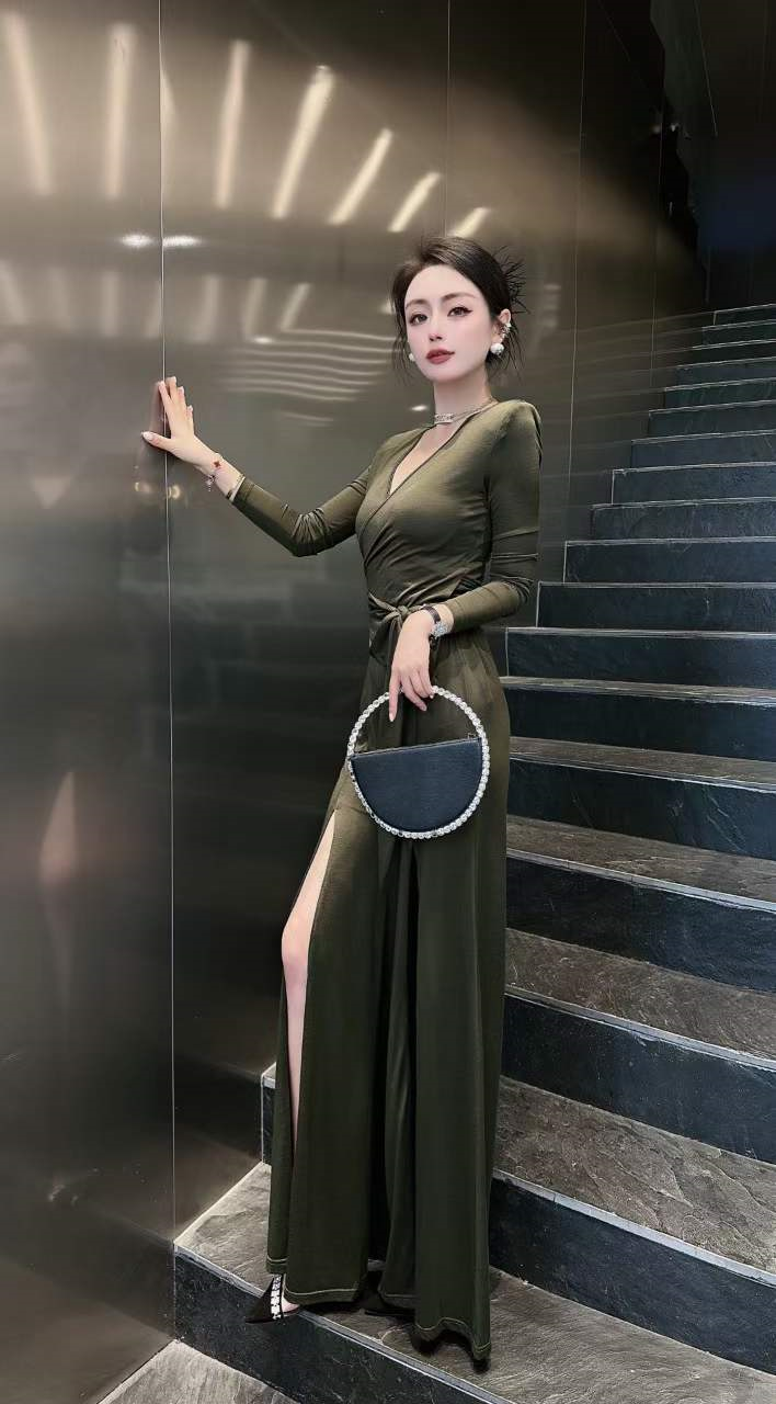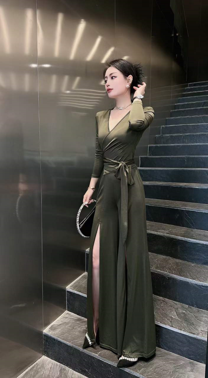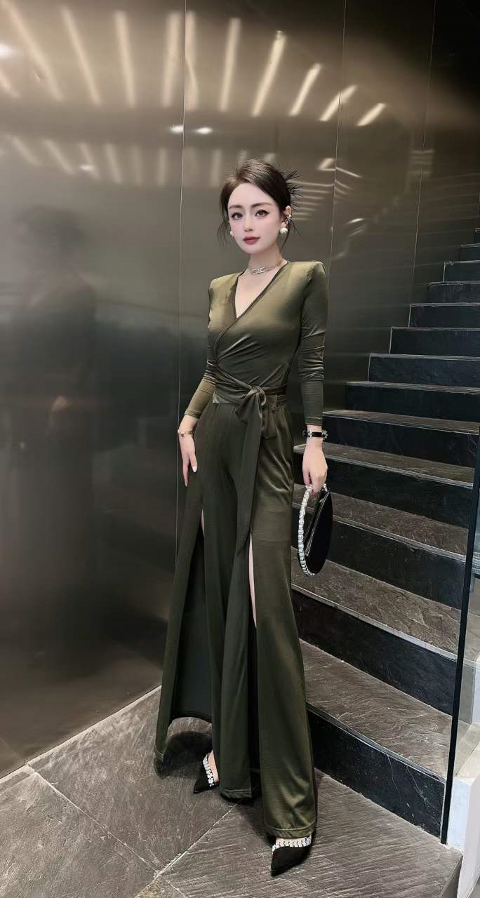 产品名称 | Product name: 时髦洋气套装裤女V领绑带上衣+开叉阔腿喇叭裤