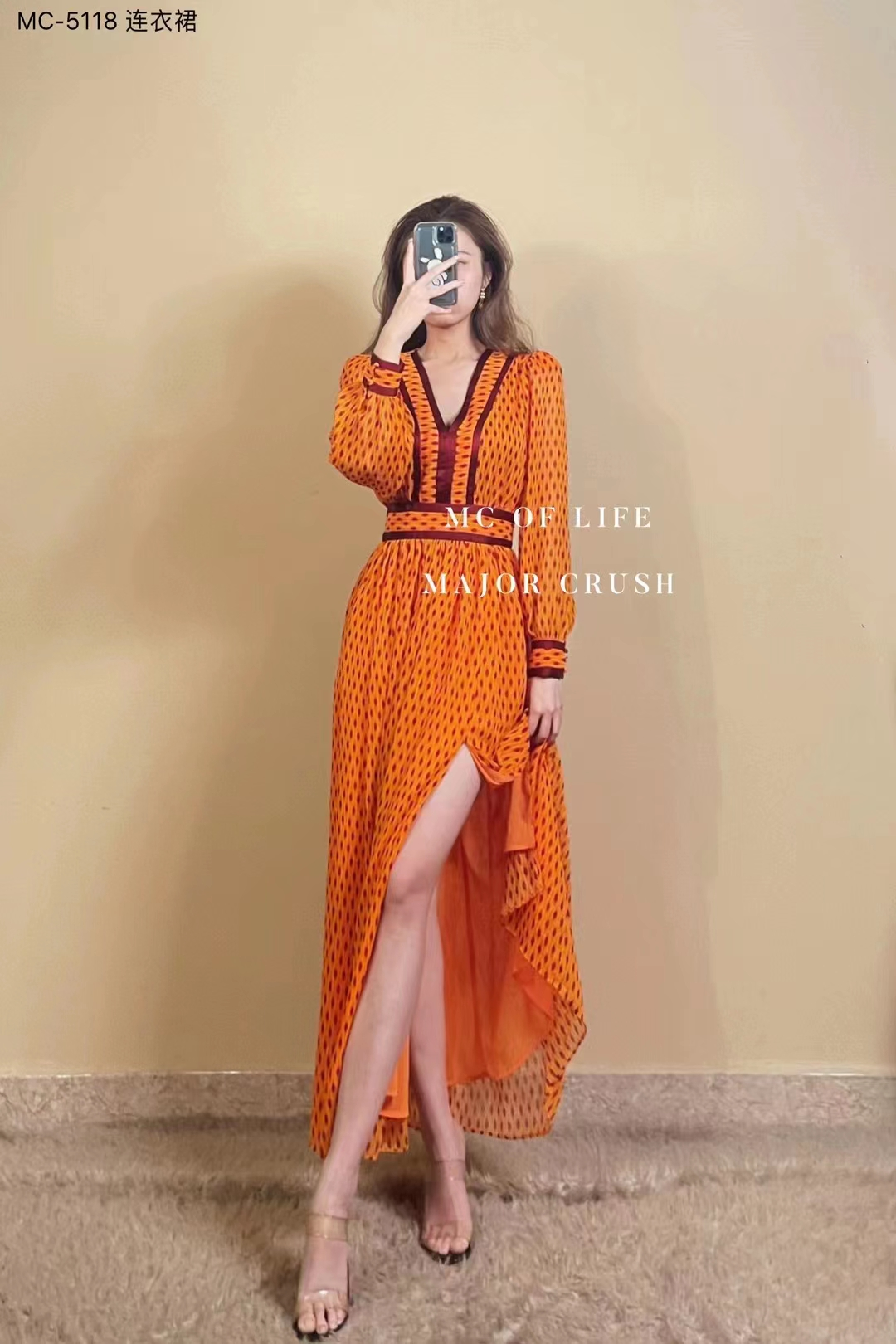 产品名称 | Product name: 2023新疆旅拍民族风波点气质收腰开叉高级感灯笼袖连衣裙女
