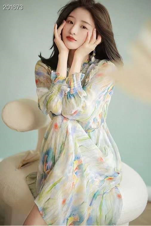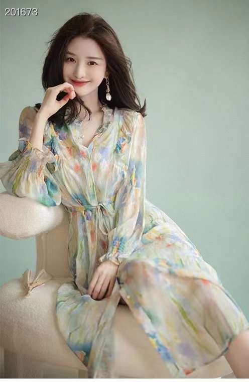 产品名称 | Product name: 花开富贵印花系列|宽松时尚衬衫裙2023新款真丝混纺连衣裙