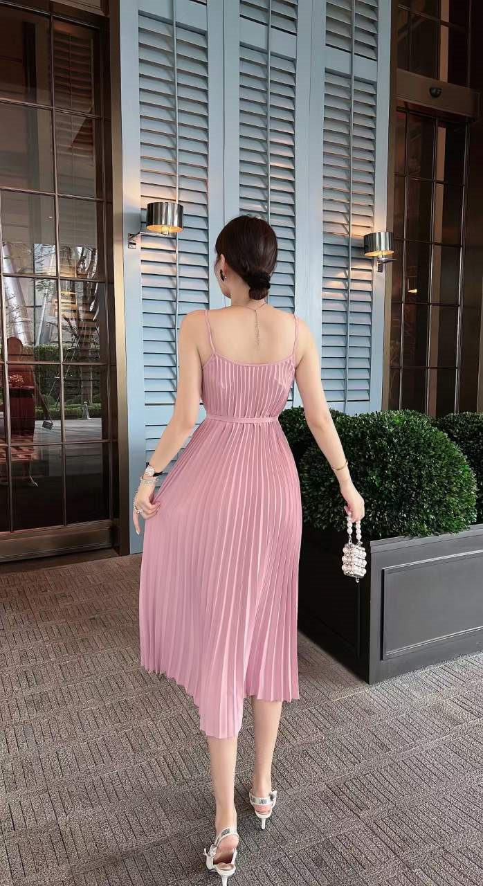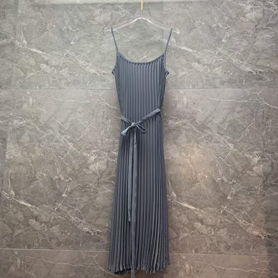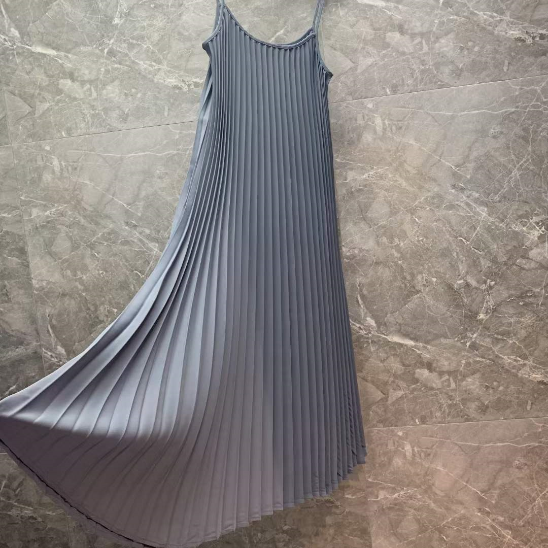 2023春夏高定定位压褶吊带连衣裙女气质百搭