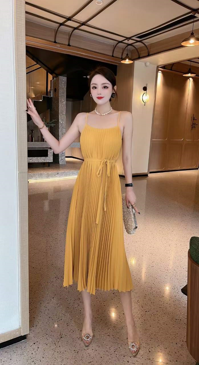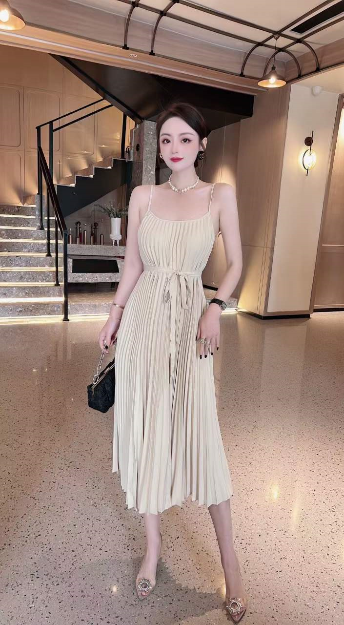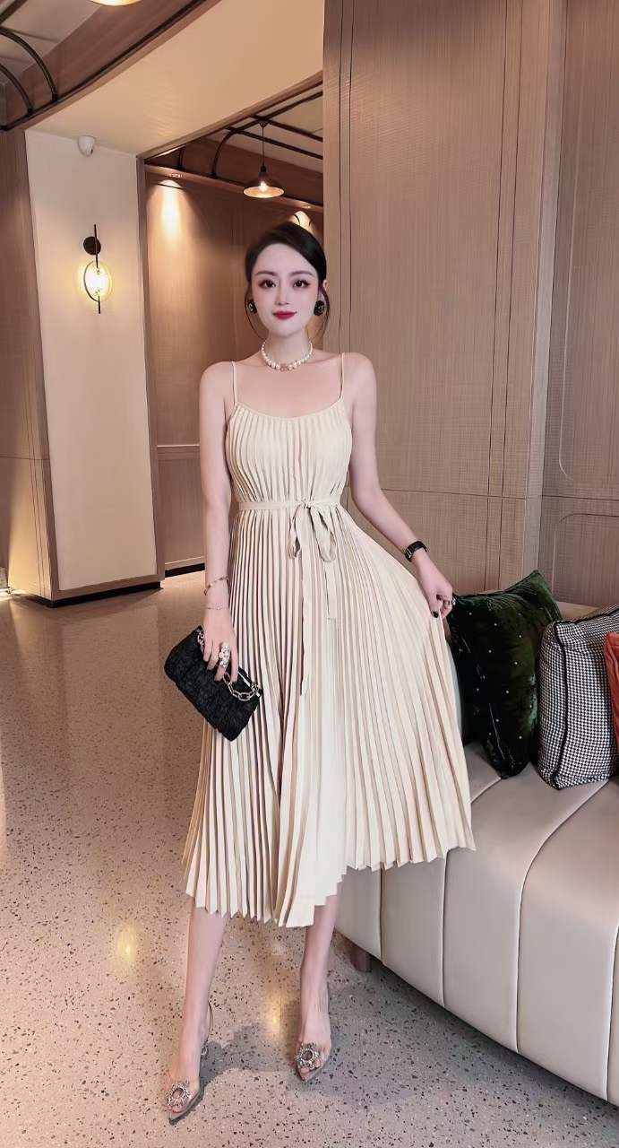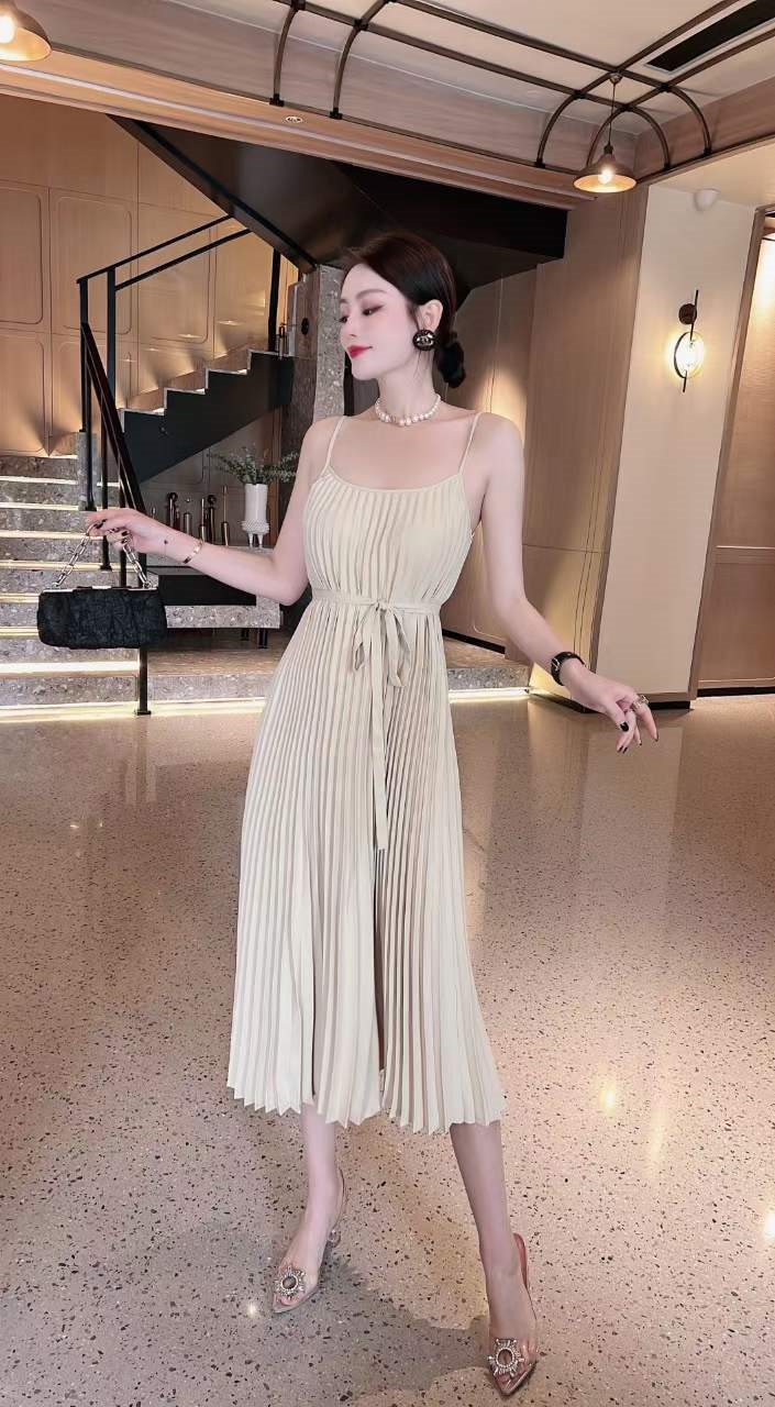 产品名称 | Product name: 2023春夏高定定位压褶吊带连衣裙女气质百搭
