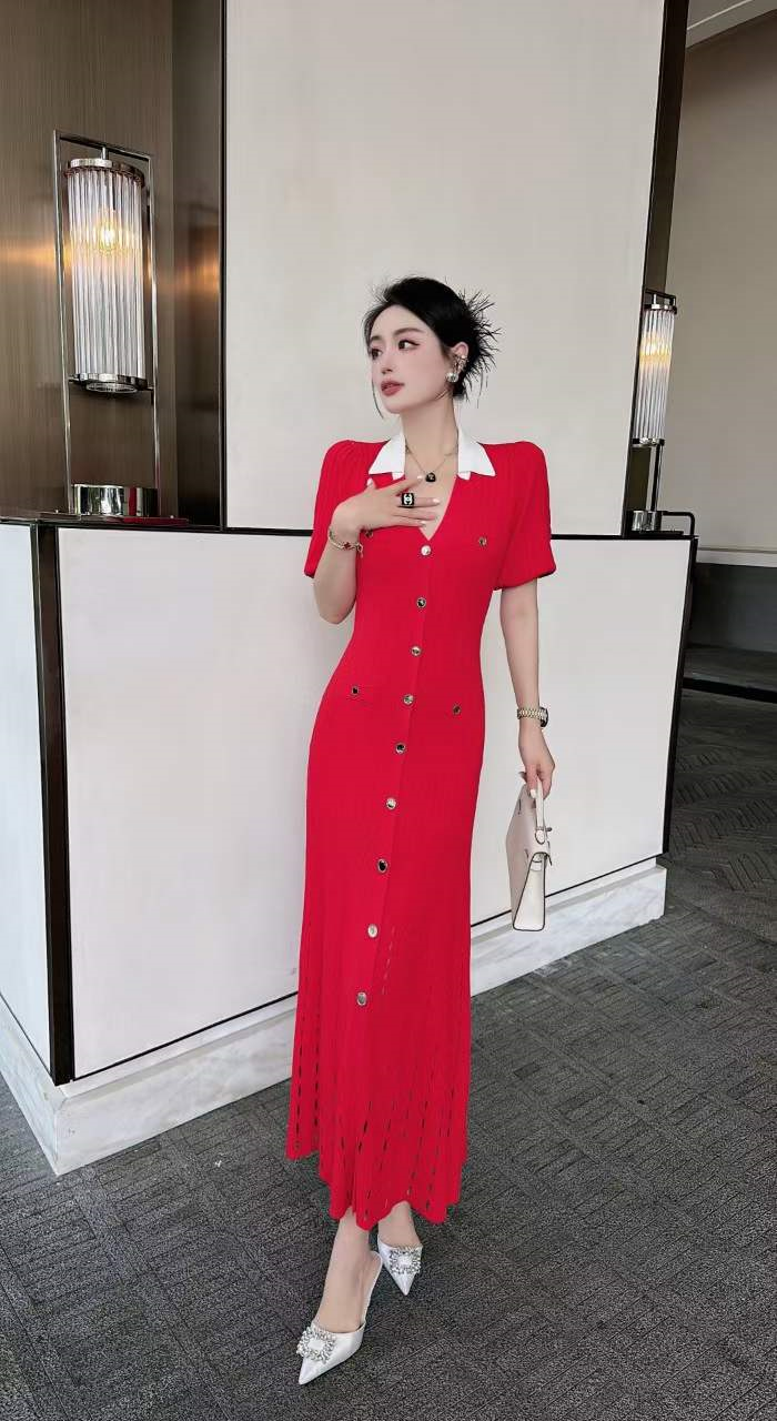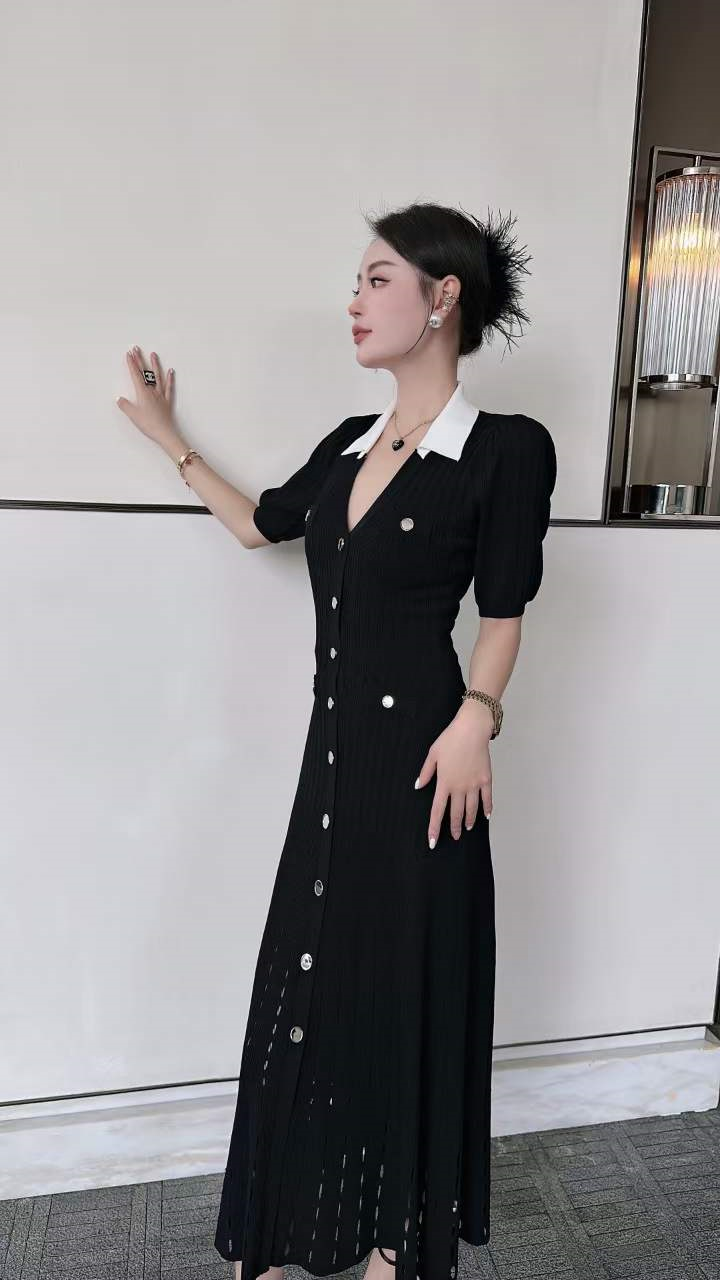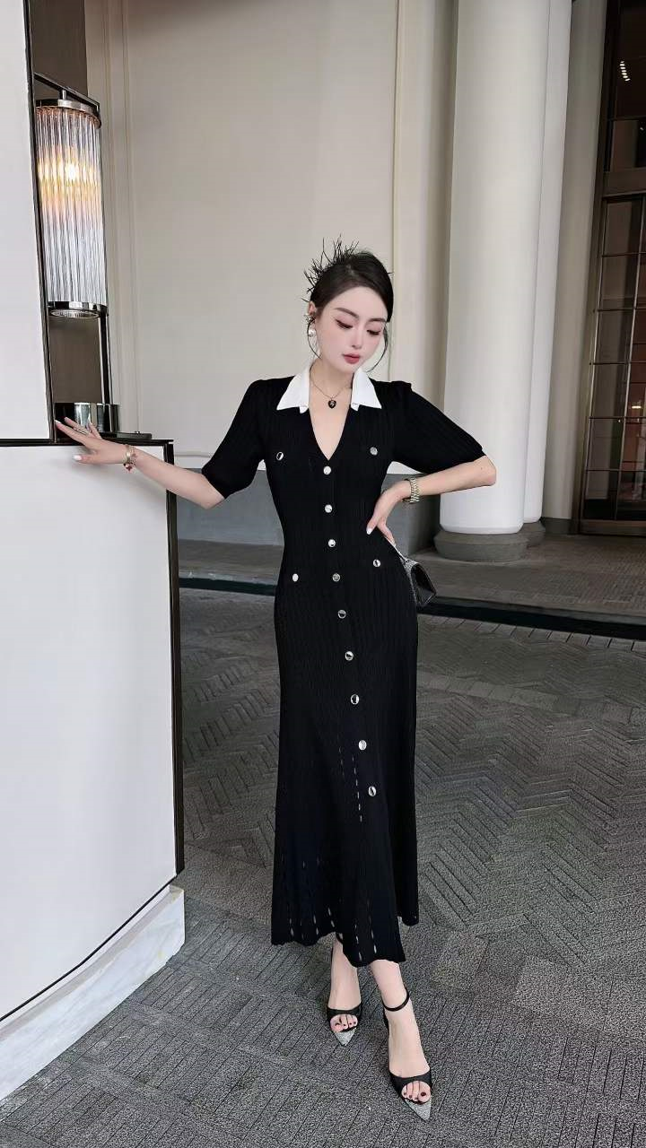 产品名称 | Product name: 火爆上新高端系列高定高密织数POLO领钉扣针织连衣裙
