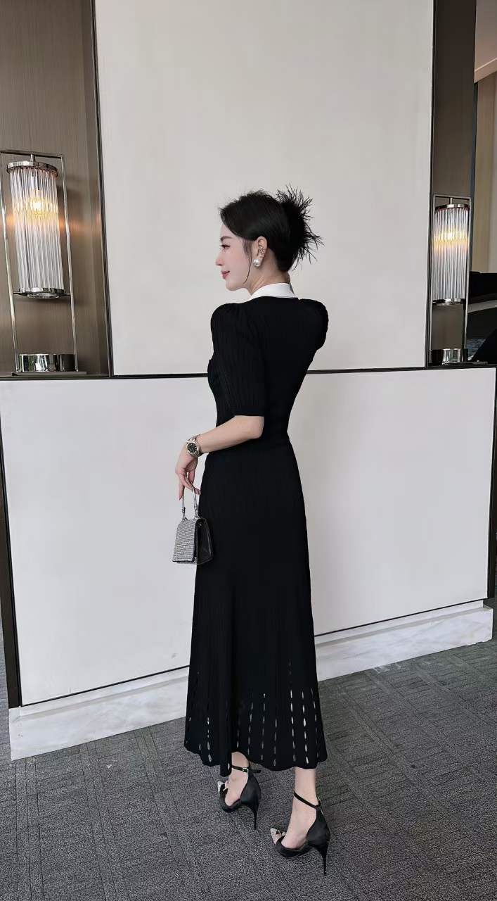 火爆上新高端狠货系列高定高密织数针织,定织定染,轻薄舒适百搭,极佳的垂感面料,上身效果显瘦不挑人,拼色领设计整体干净典雅,剪裁干净利落,很显档次,包缝效果既穿着更舒适,️有防止面料脱线,针脚细腻,做工仔细,下摆镂空花设计,编织精工细致,美观大方,弹力很大,包容性极强,两色入!黑色,红色,均码