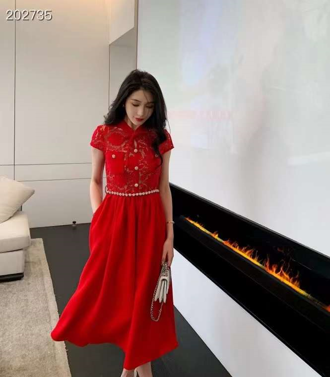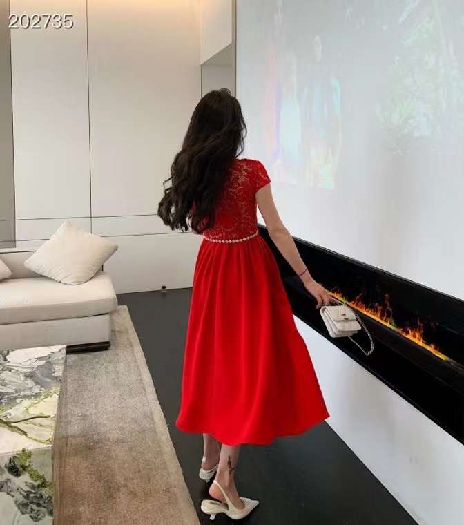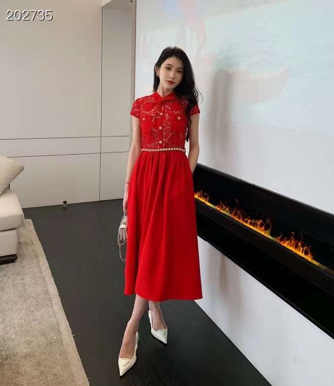 产品名称 | Product name: 高端尚重工刺绣蕾丝镶钻系带连衣裙女欧货夏季新款法式气质长裙