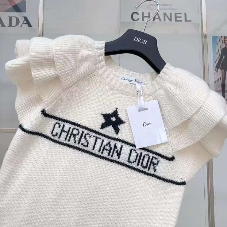 爆单推荐 CD23SS——早春新款幸运星提花短袖针织毛衣🖤🤍原版定制泡泡花边袖设计更加调皮灵动 经典版型百搭不挑人 白富美必入高级单品 两色三码 SML.