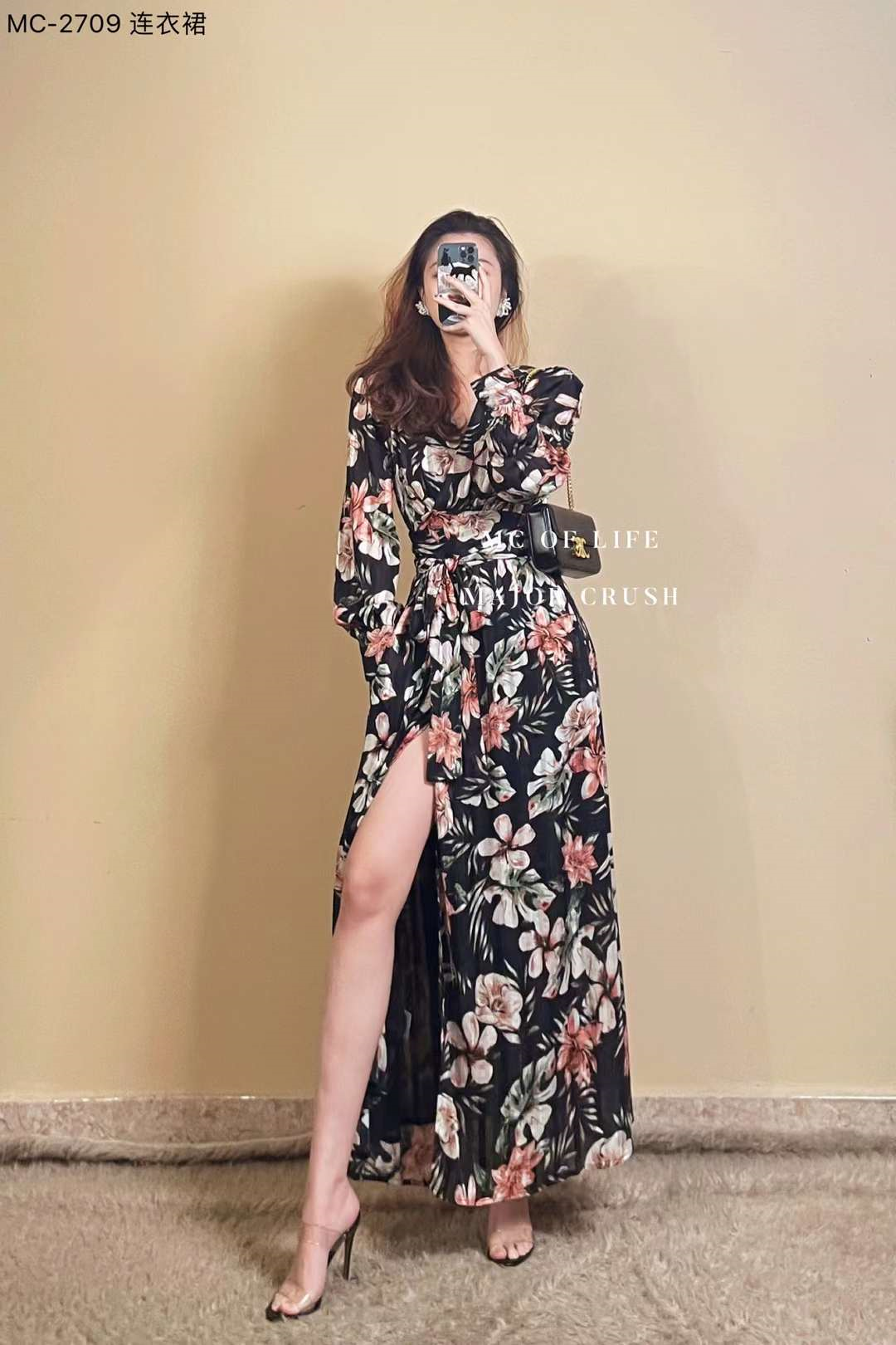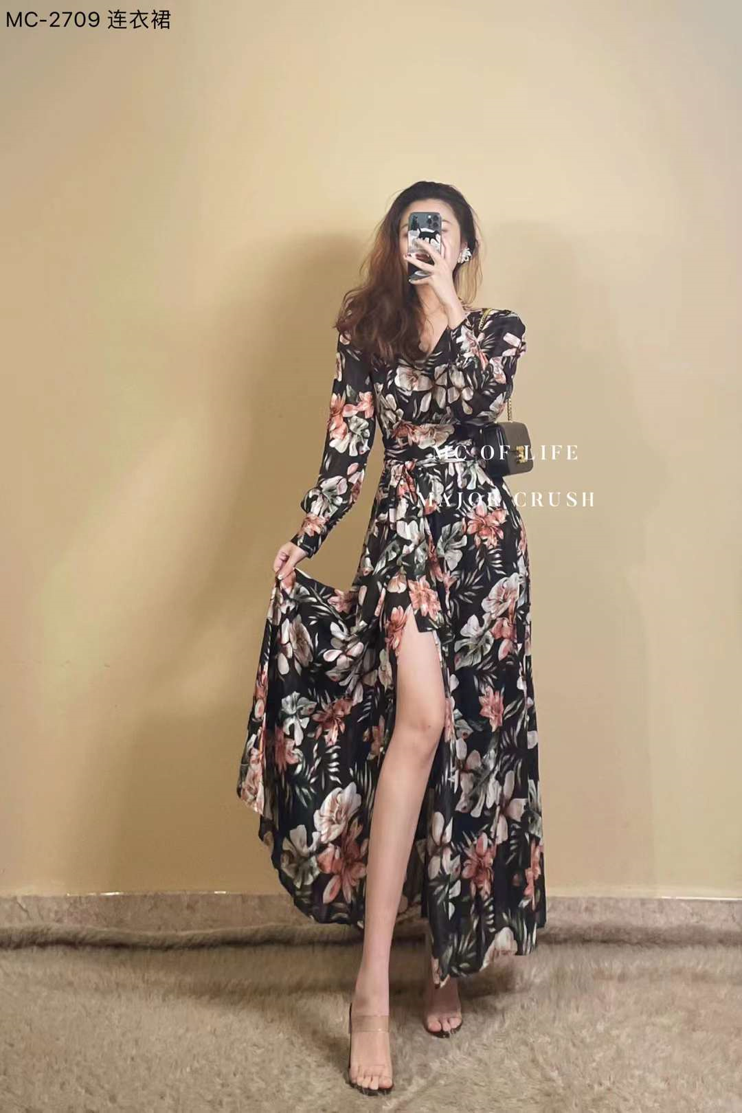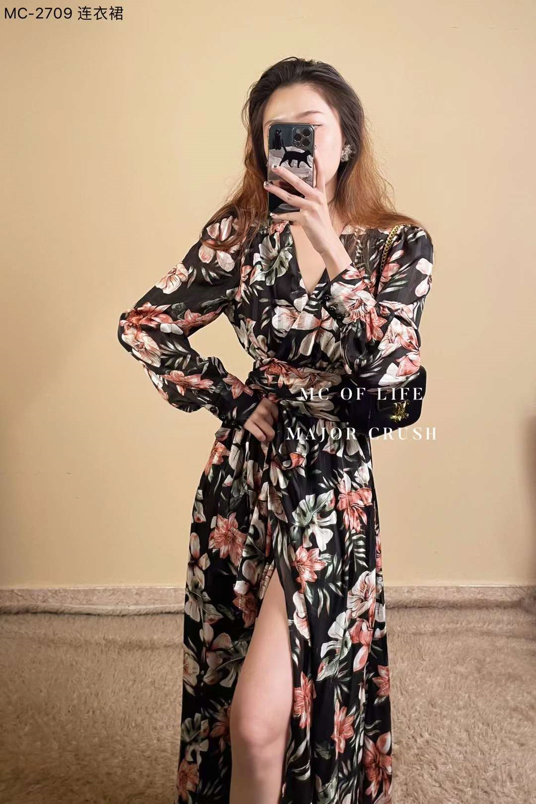 产品名称 | Product name: MC高级感轻奢系带裹胸开叉印花连衣裙女