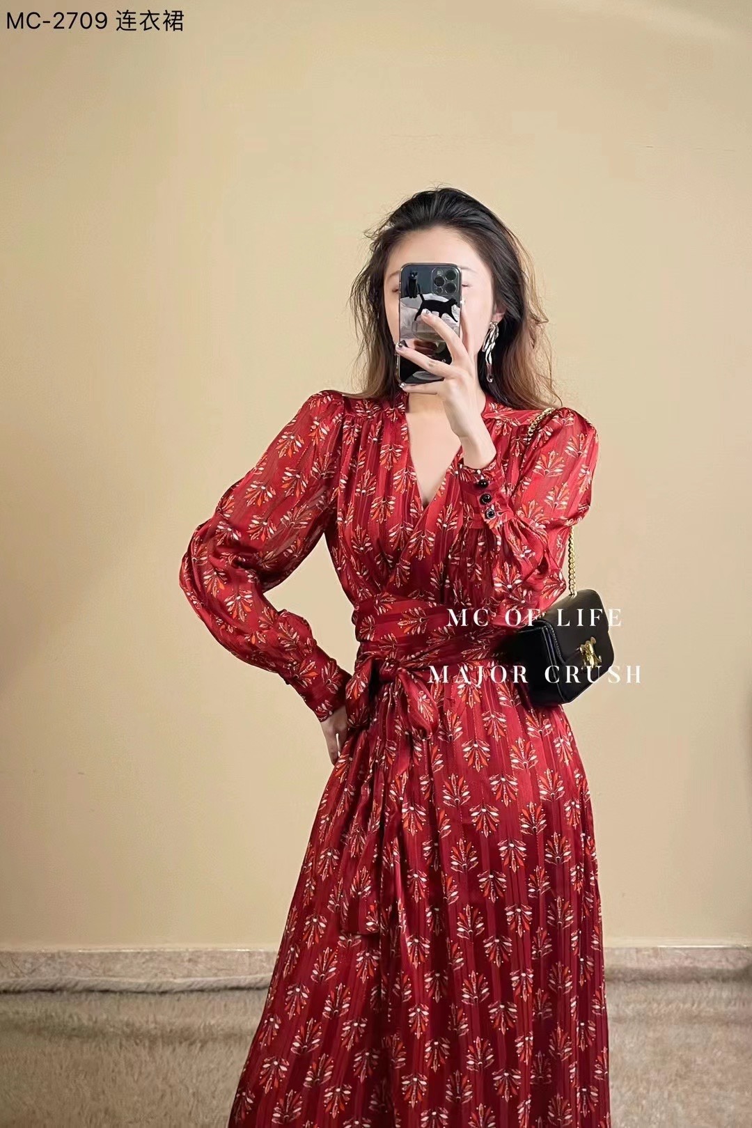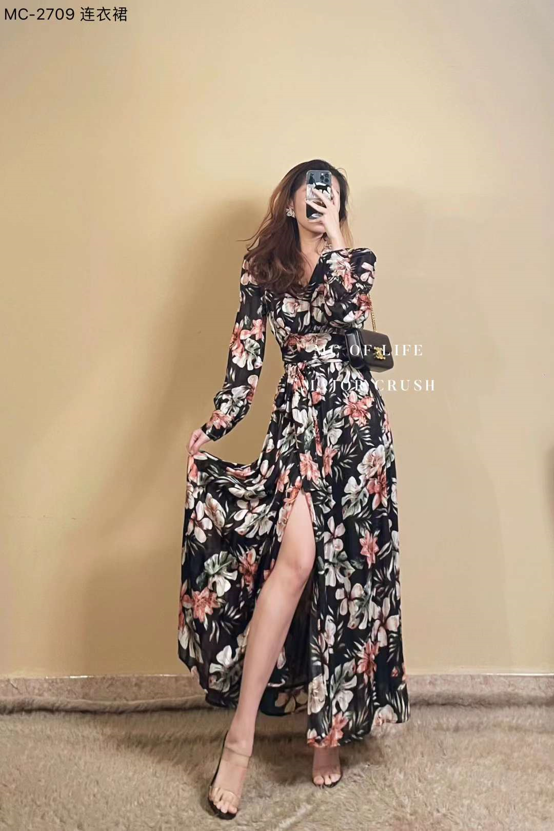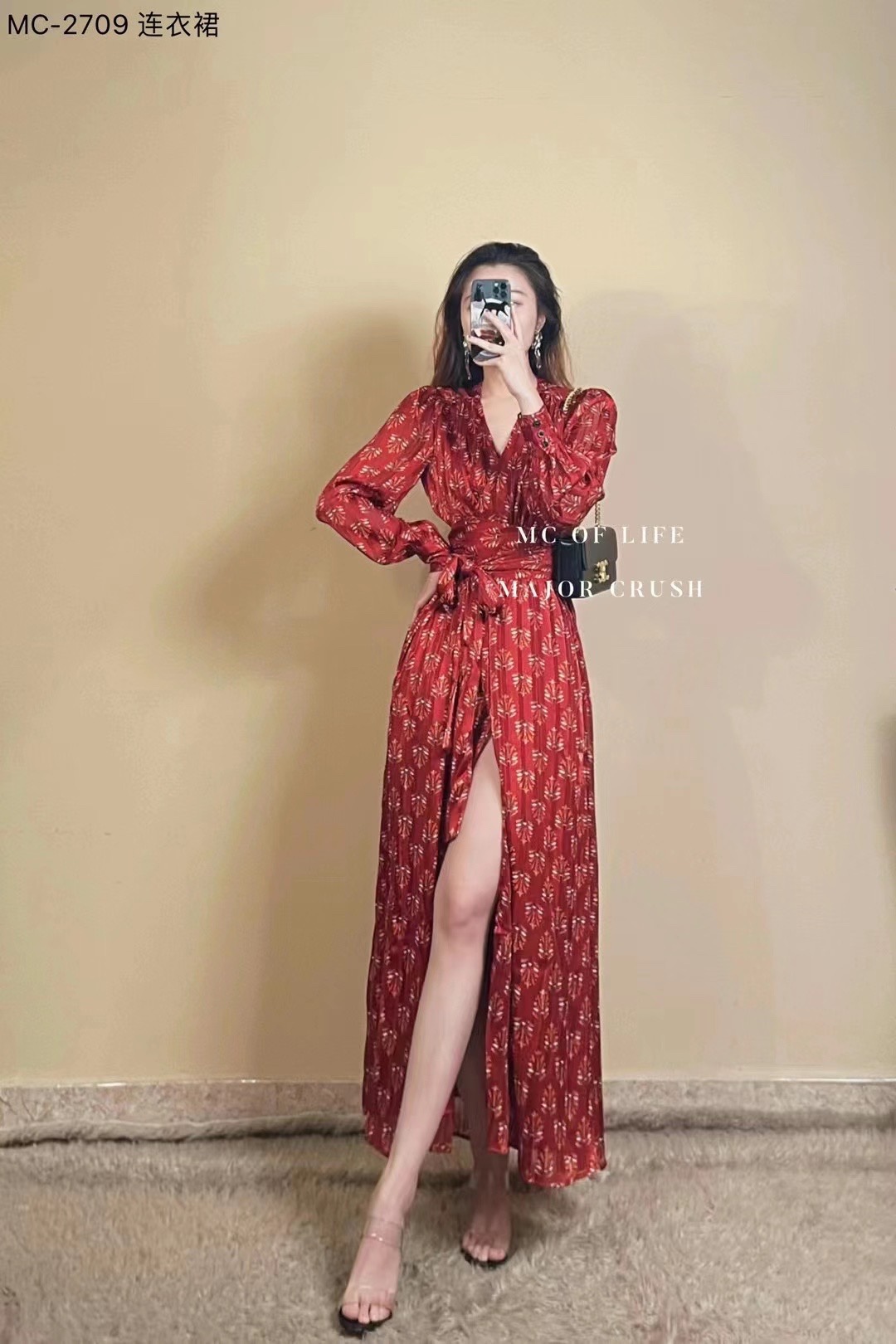 产品名称 | Product name: MC高级感轻奢系带裹胸开叉印花连衣裙女