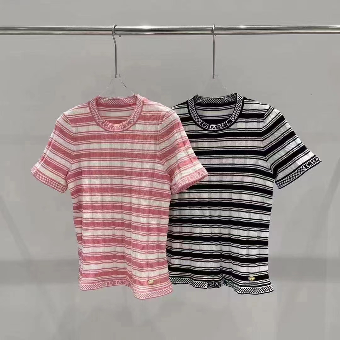 产品名称 | Product name: 高品质小香风撞色条纹修身圆领套头针织衫女