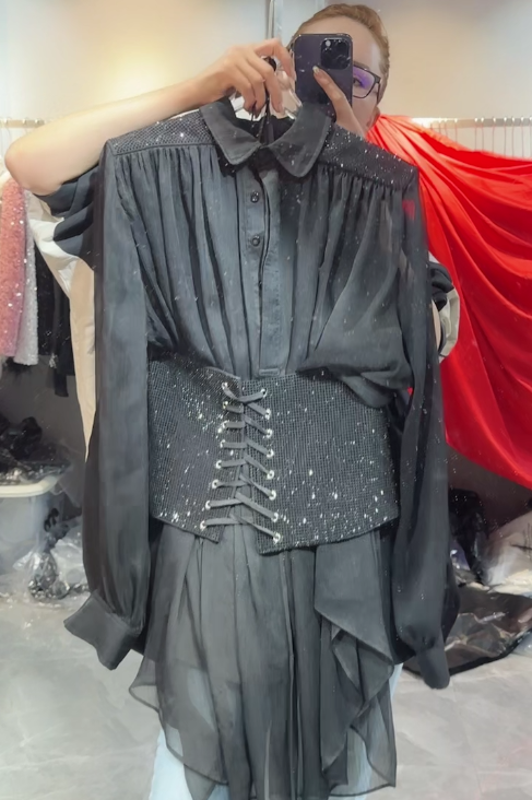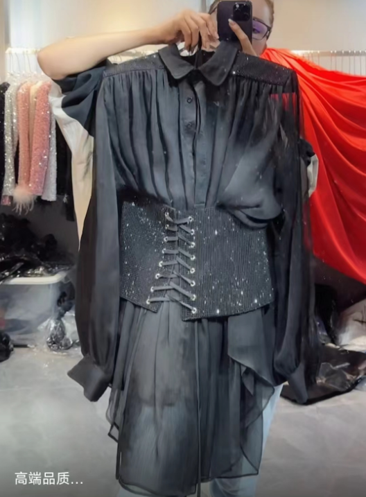 产品名称 | Product name: Yultuzum高端新款宽腰封系带修身衬衫连衣裙女