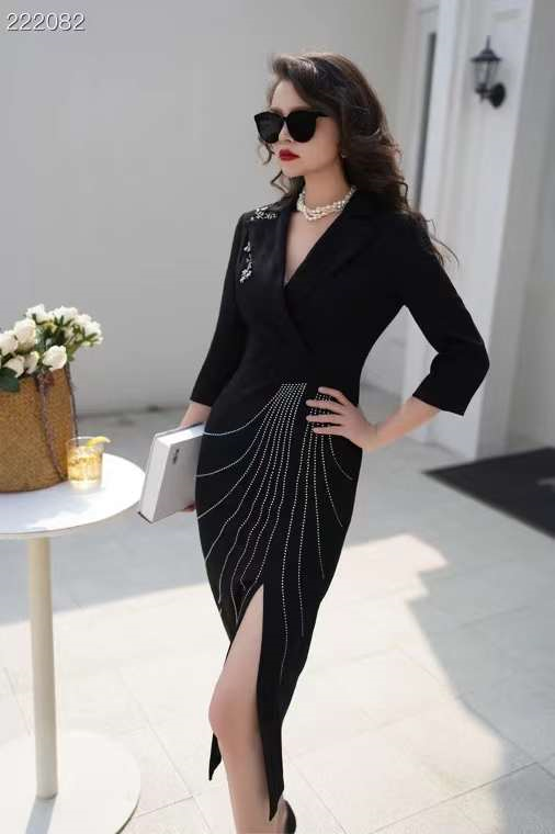 产品名称 | Product name: 爆款重工订珠烫钻西装连衣裙