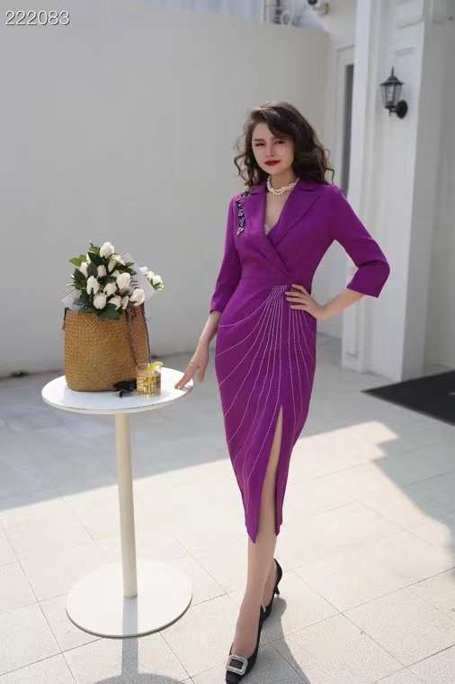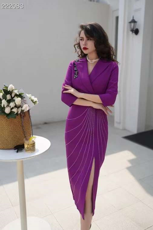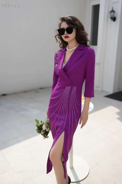 爆款重工订珠烫钻西装连衣裙  2色 紫色 黑色 码数SMLXLXXL