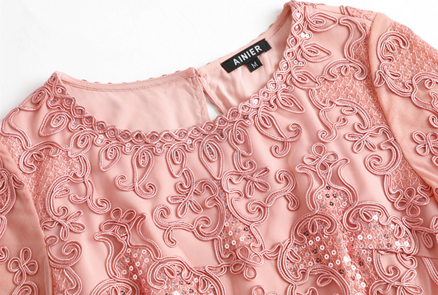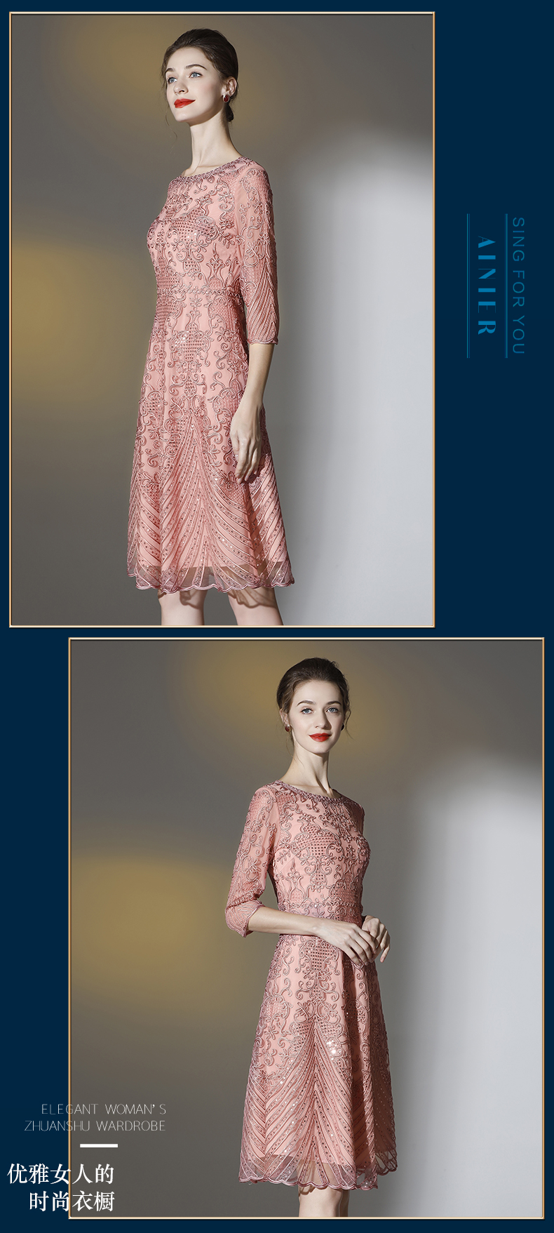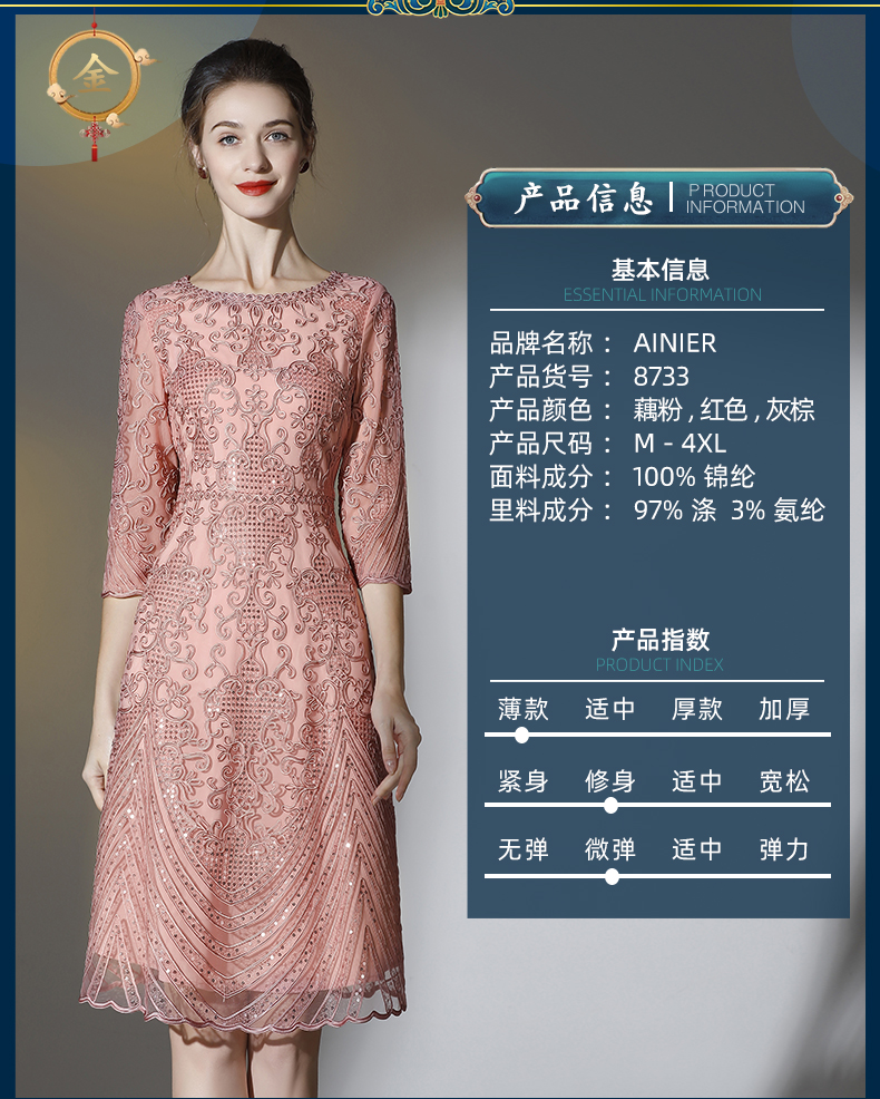 产品名称 | Product name: 爆款重工圆领中袖蕾丝连衣裙女婚礼妈妈装春秋平时可穿喜婆婆婚宴装中长款礼服连衣裙