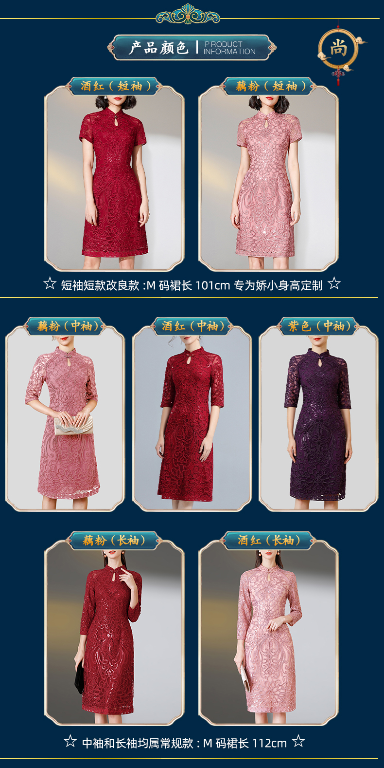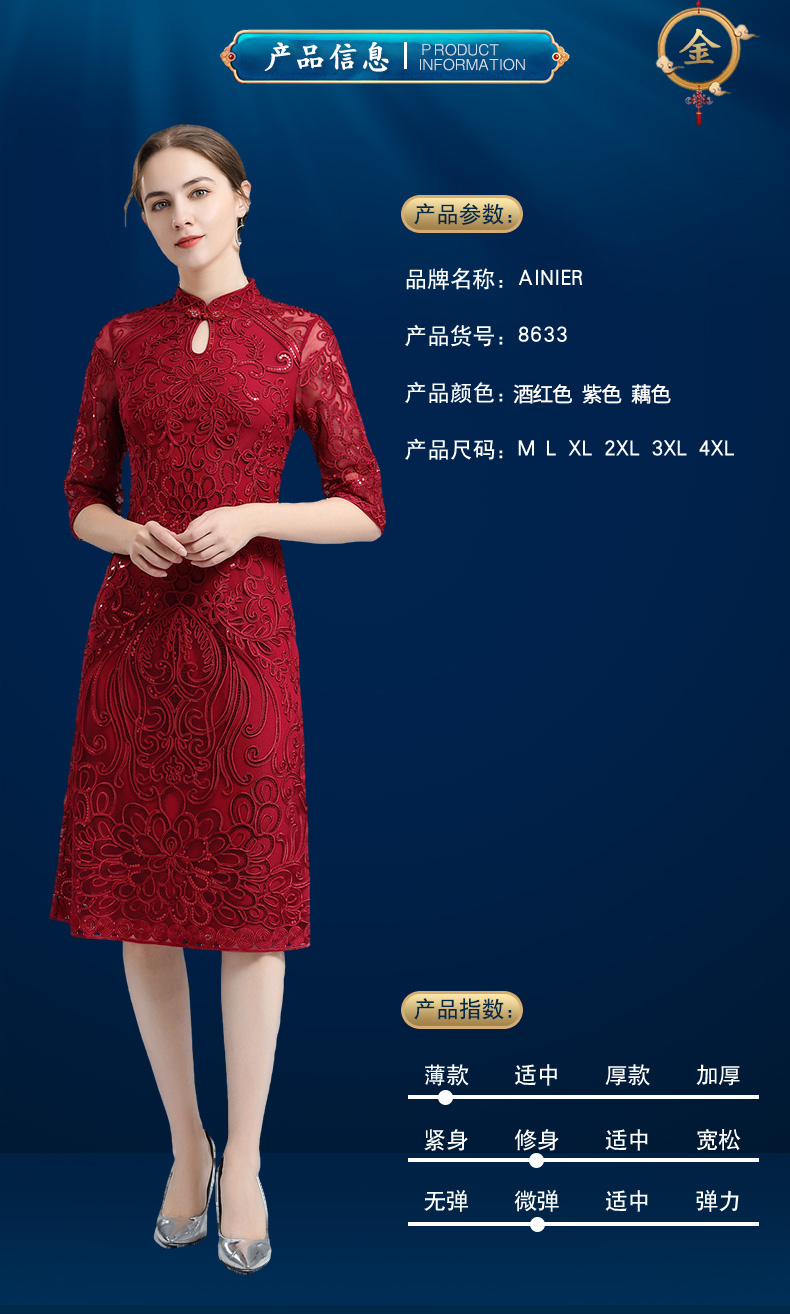 产品名称 | Product name: Big size lace dress喜婆婆旗袍婚礼妈妈装新娘礼服喜庆婚宴长袖蕾丝旗袍连衣裙