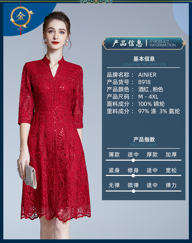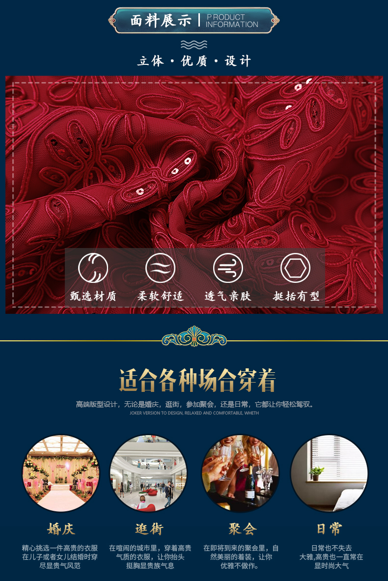产品名称 | Product name: 喜婆婆婚宴装礼服2023春装新款高贵喜妈妈红色婚礼连衣裙