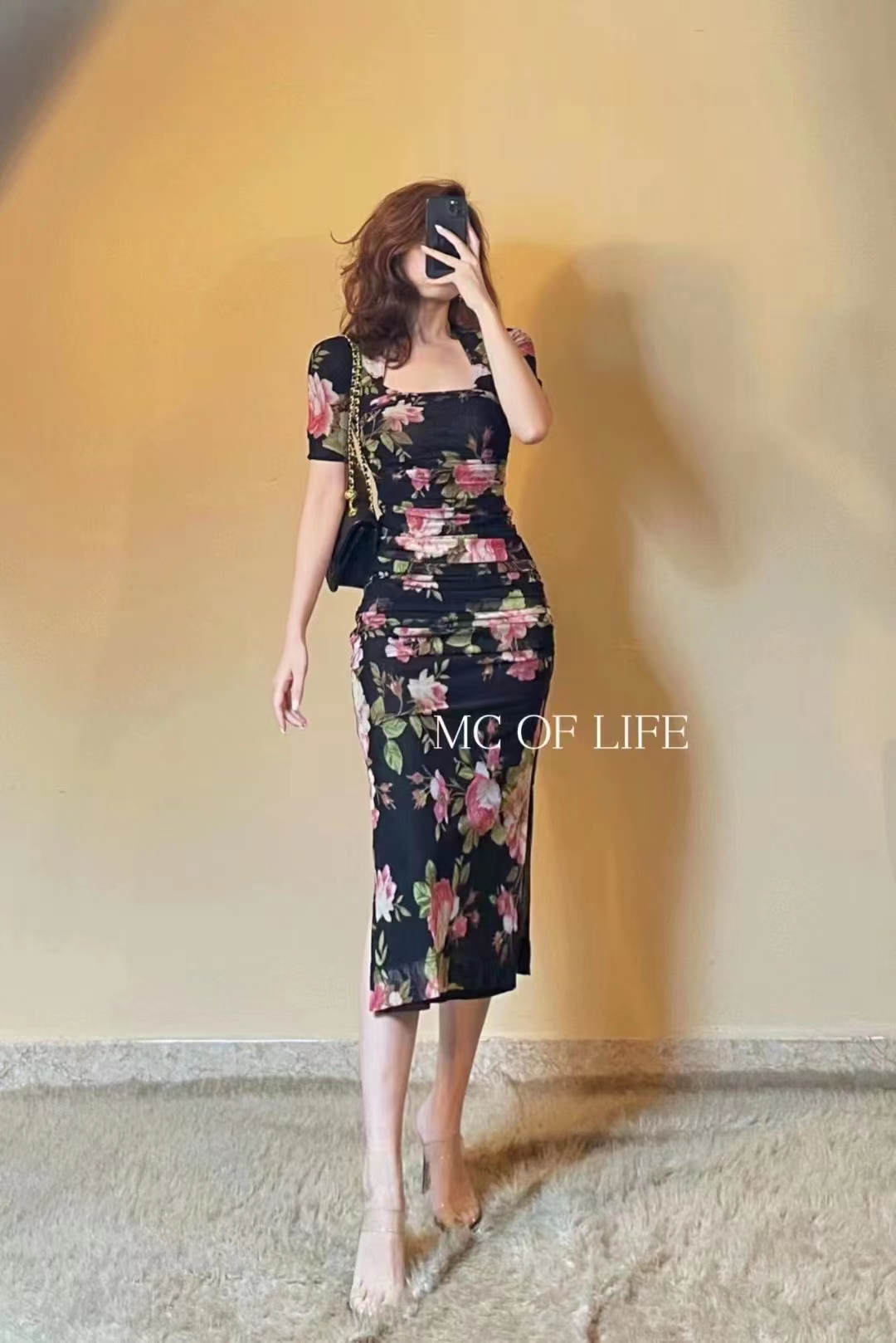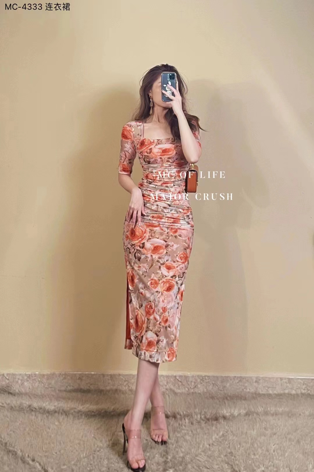 产品名称 | Product name: MC超仙春季新款一字领碎花茶歇法式连衣裙23年新款原创小众设计