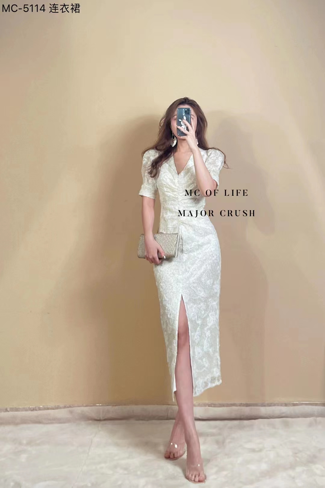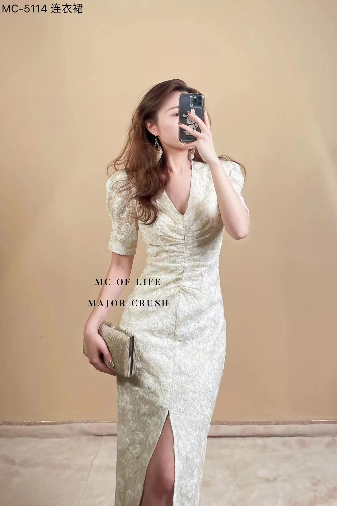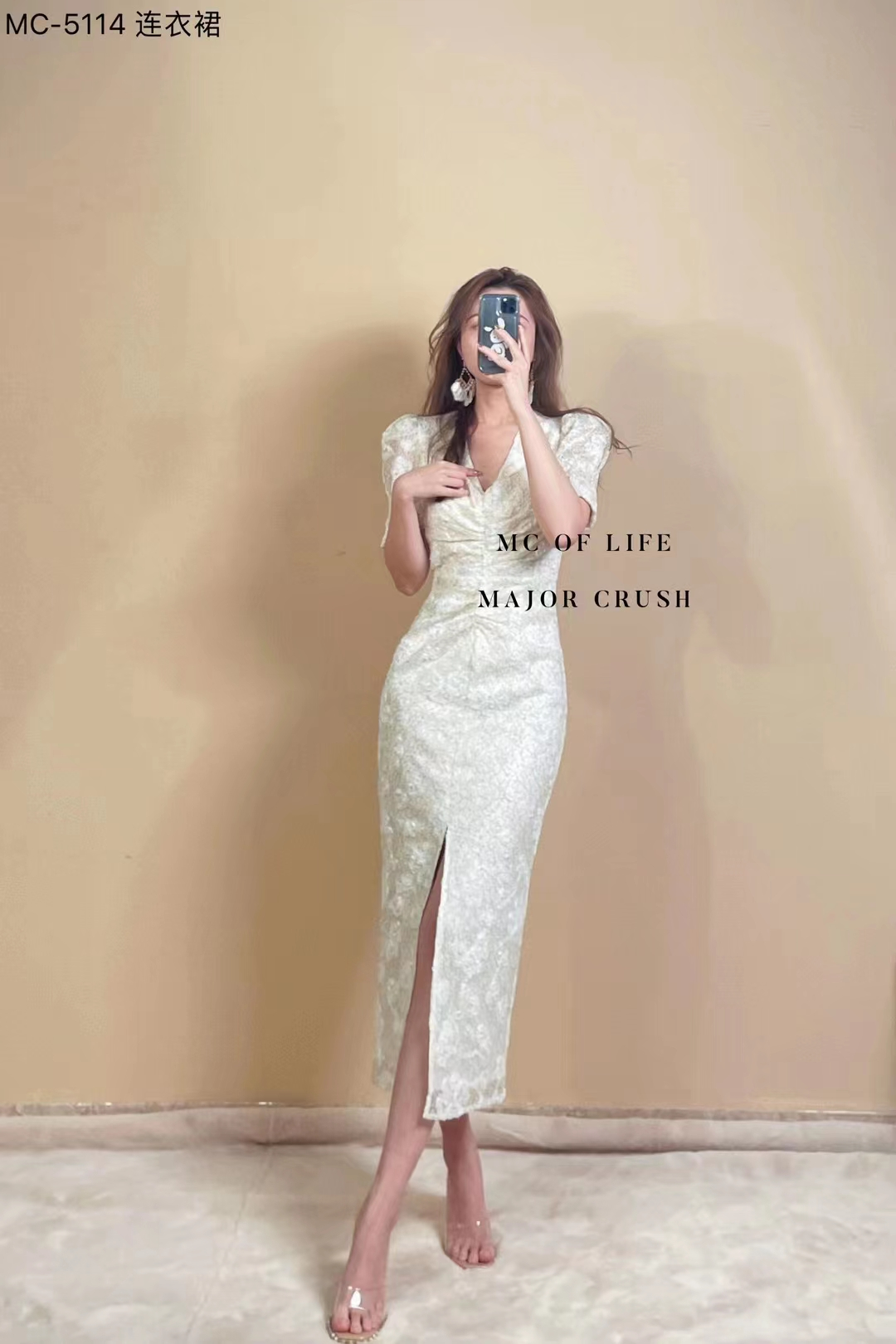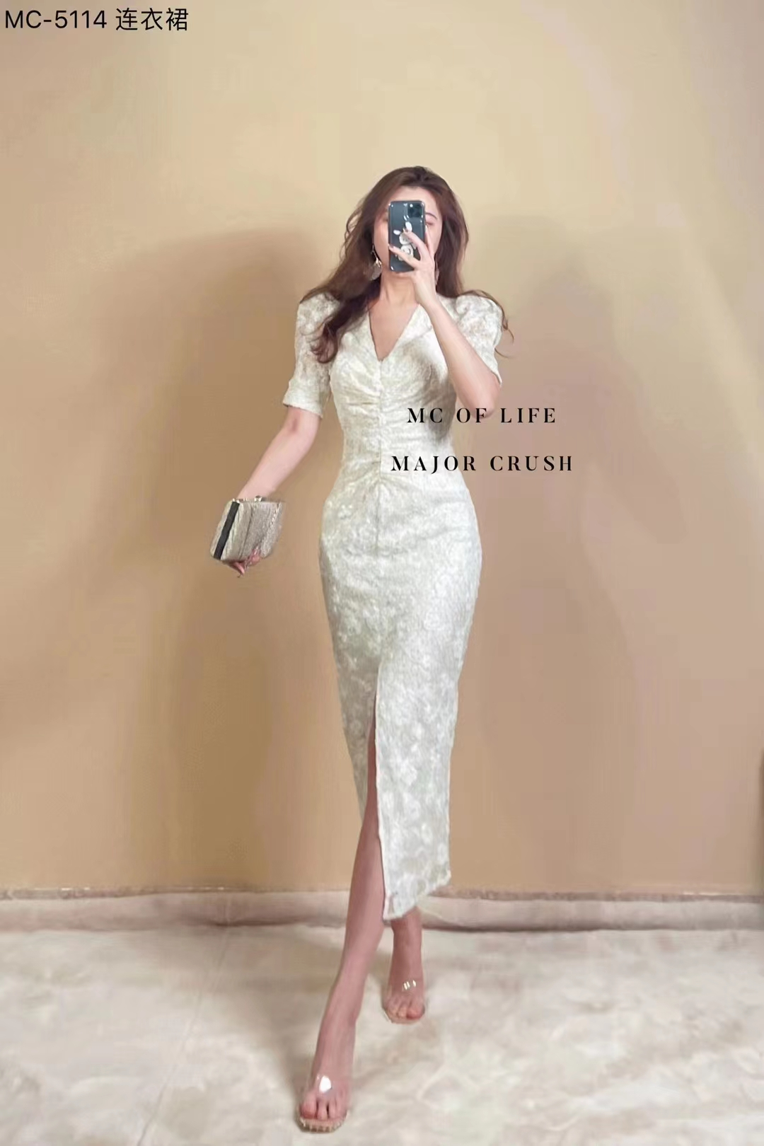 产品名称 | Product name: MC轻奢高级感立体提花精美连衣裙v领简约高腰显瘦23年春夏新款原创
