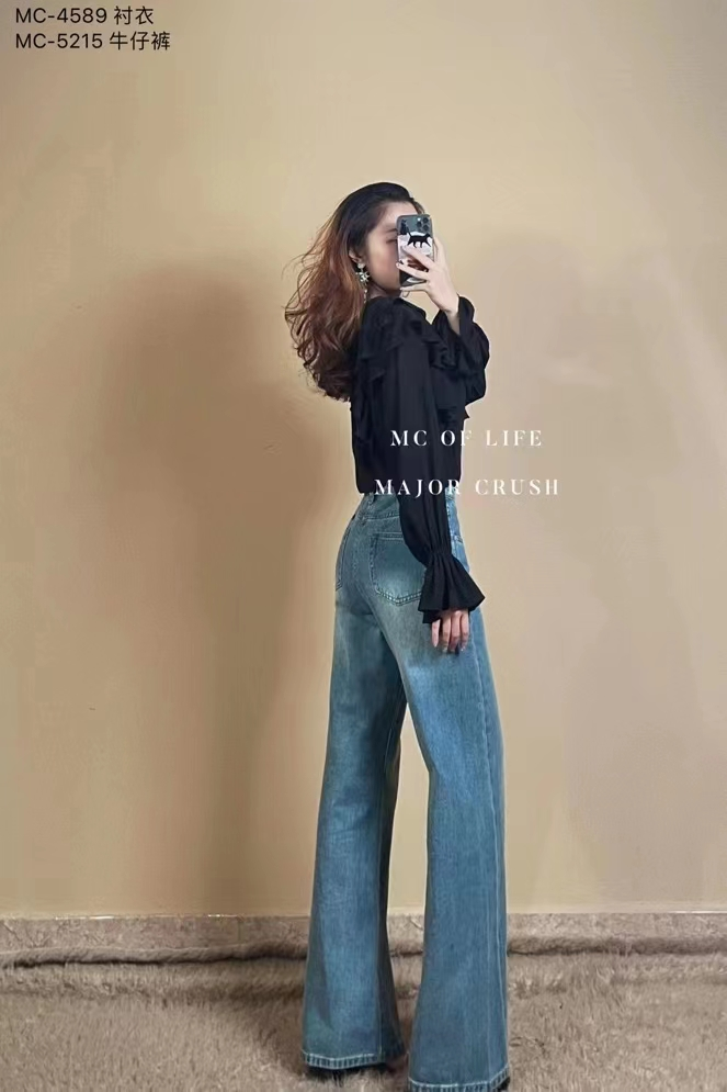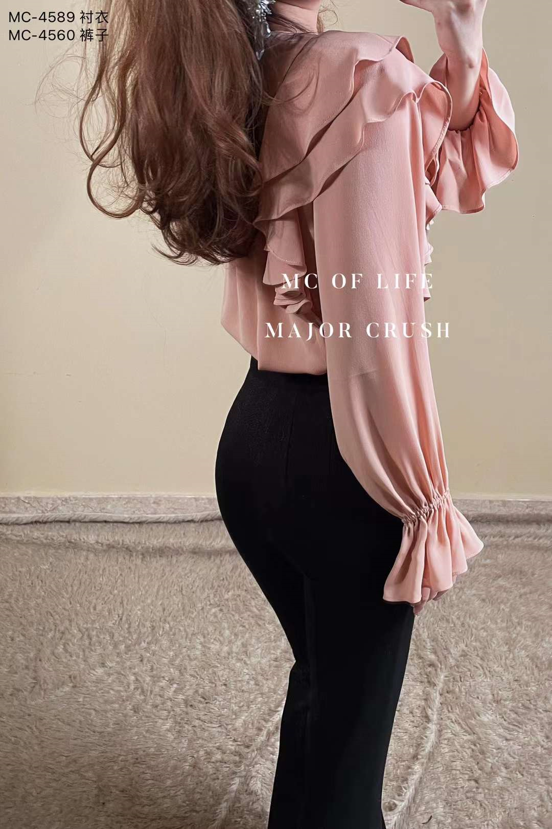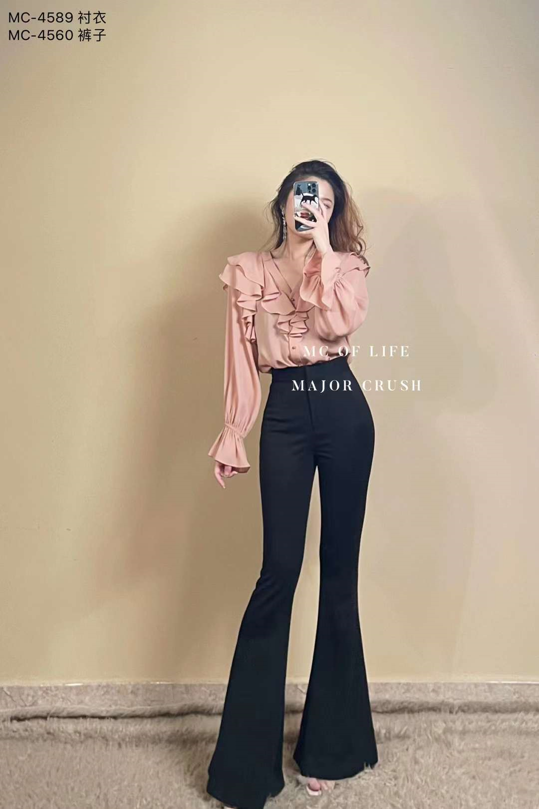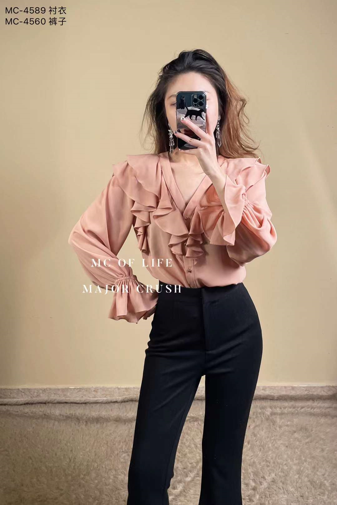 产品名称 | Product name: MC原创2023荷叶边V领长袖衬衫女气质显瘦