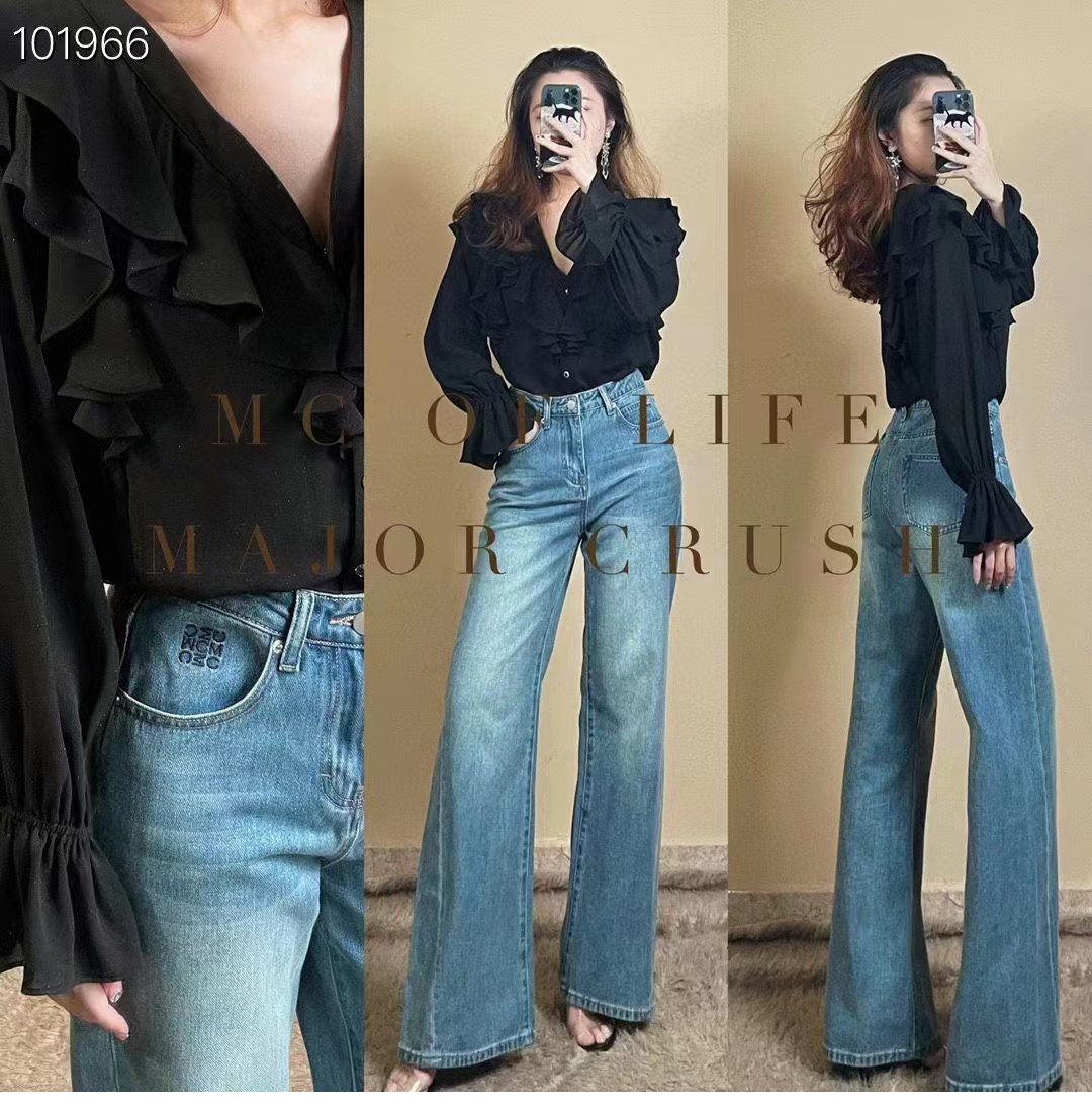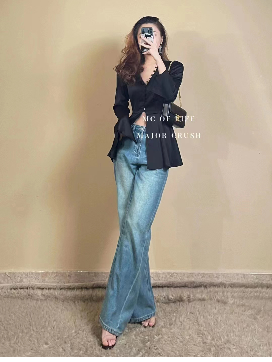 产品名称 | Product name: MC春夏新款高端原创小众重工牛仔裤女高腰百搭喇叭裤阔腿裤