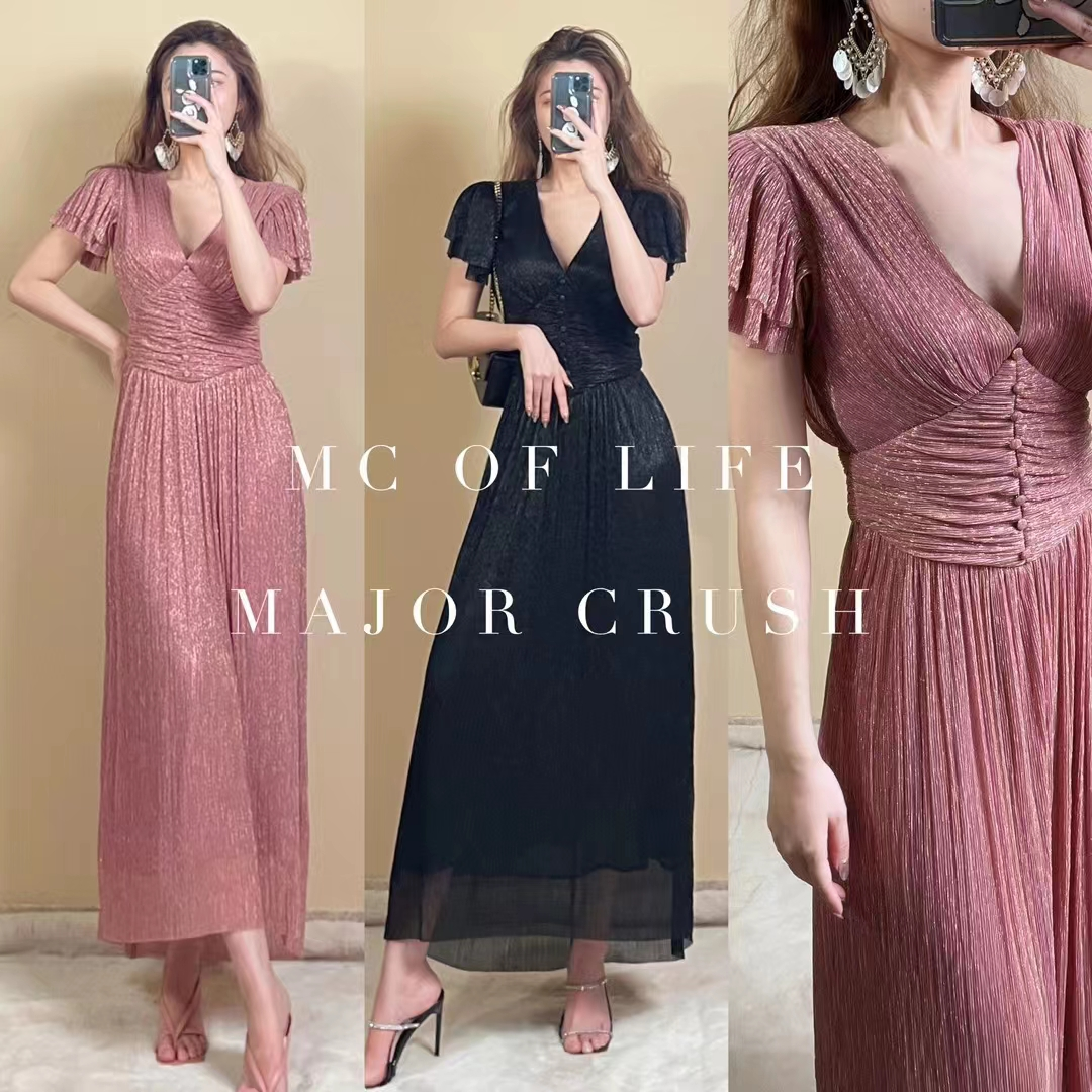 MC轻奢夏季新款鱼骨收腰双绉亮丝气质复古仙美公主裙