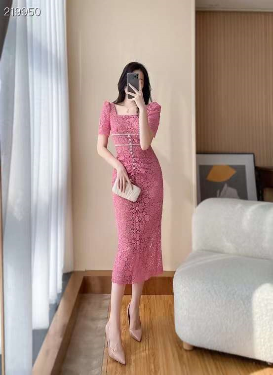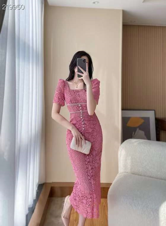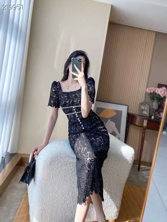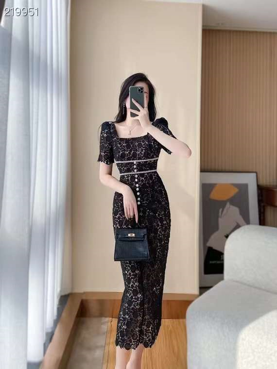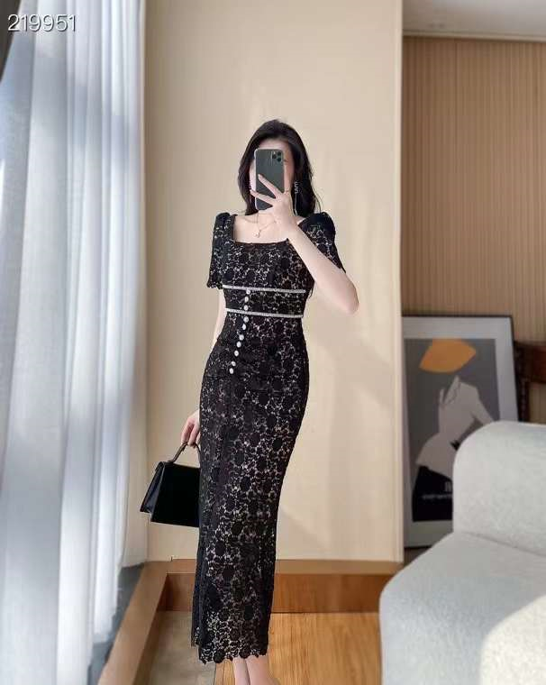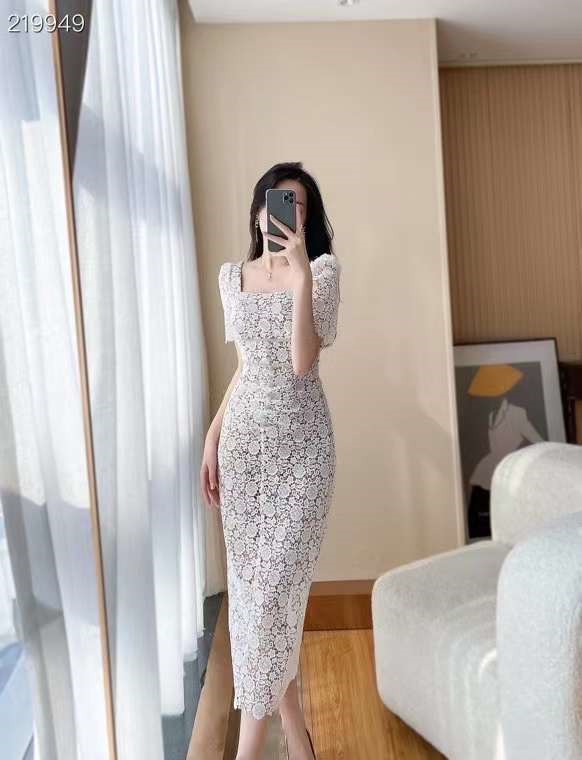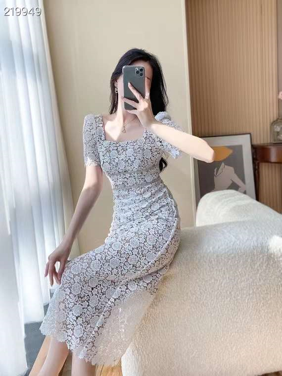 产品名称 | Product name: 2023夏季新品方领泡泡袖水溶蕾丝连衣裙