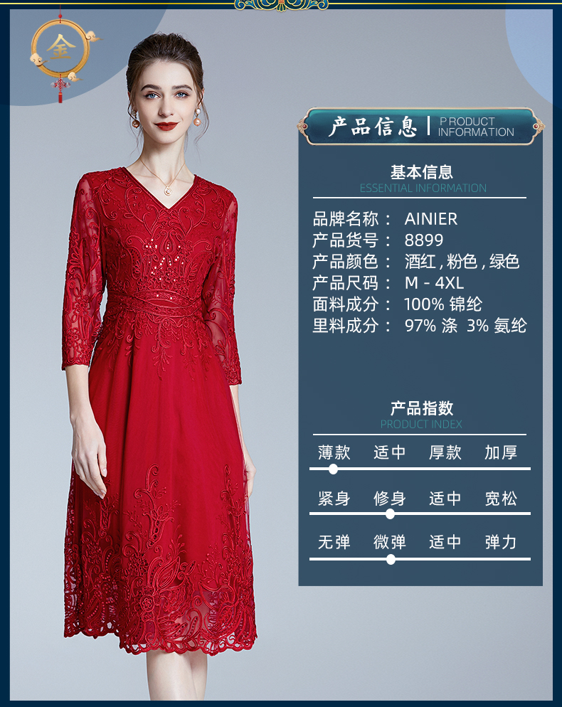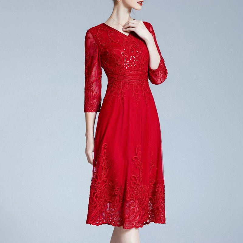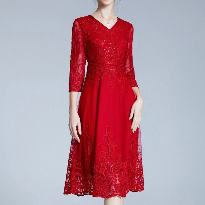 产品名称 | Product name: big size lace dress 2023 Noble V-neck Hi Mom Wedding Dress Medium Length Mesh Embroidery Young Hi Mo