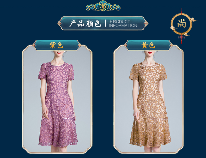 ️️新款上市爆款升级版中袖重工盘花连衣裙收腰设计独特别致优雅,摇曳生姿,独特的剪裁赋予完美上身效果,咱家做的是高版本精梳密织 很有质感 上身绝美 。2色6码,紫粉,黄色M一4xl8926
