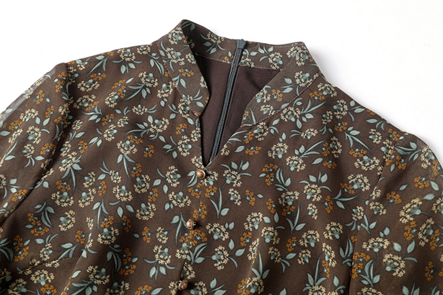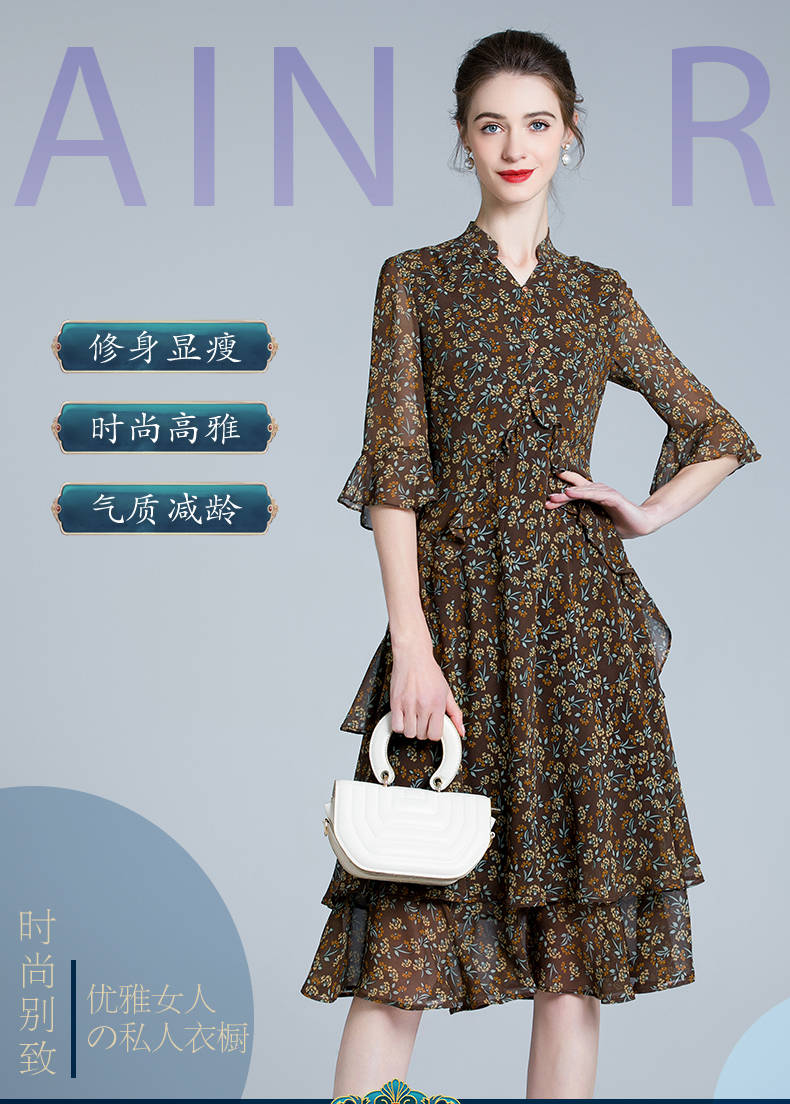 产品名称 | Product name: 妈妈装洋气法式V领印花雪纺修身连衣裙