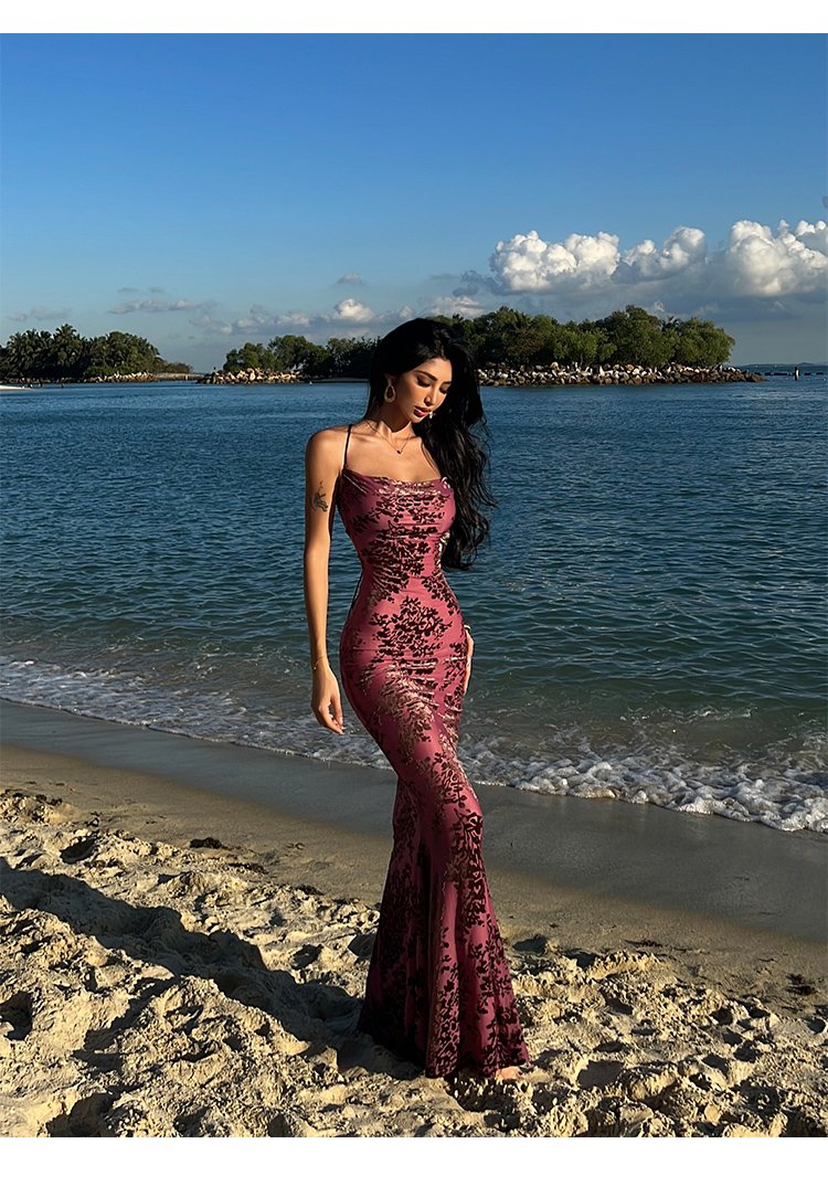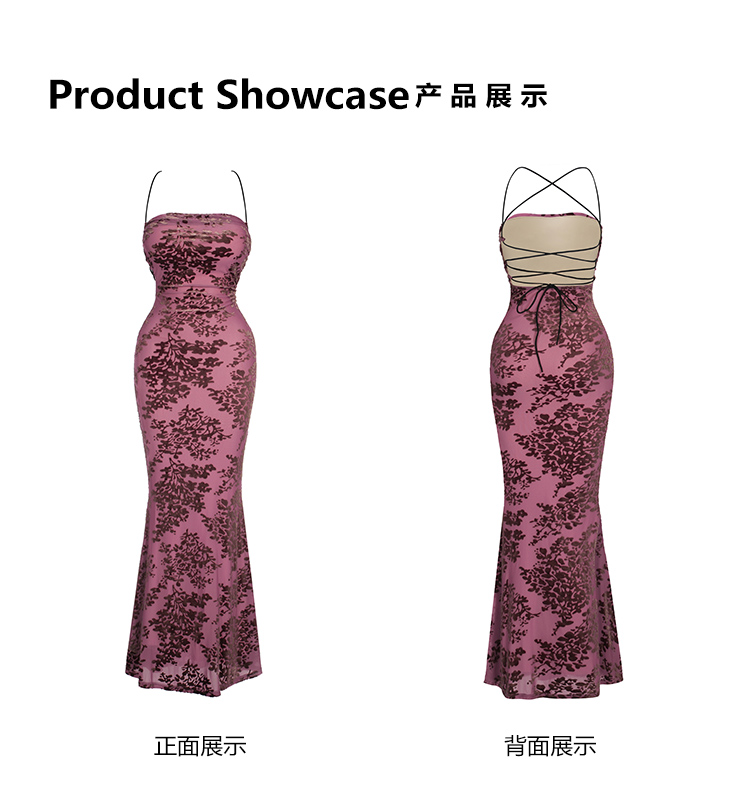 产品名称 | Product name: presale 15days 美式辣妹碎花吊带裙女2023夏季复古无袖露肩修身性感连衣裙