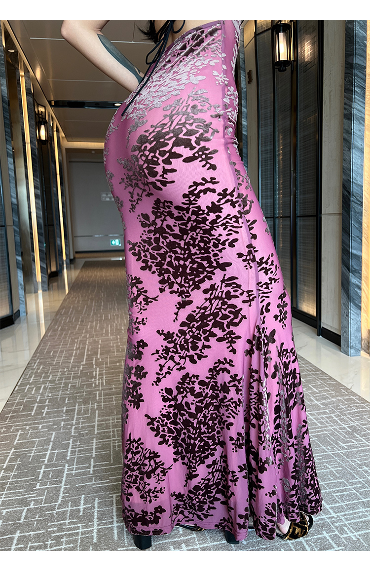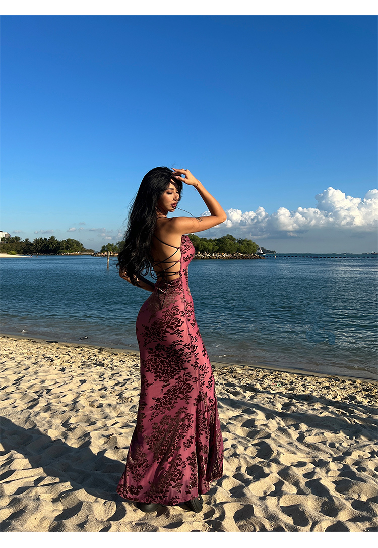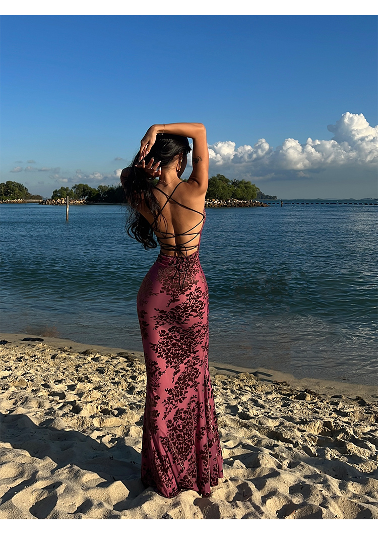 presale 15days 美式辣妹碎花吊带裙女2023夏季复古无袖露肩修身性感连衣裙