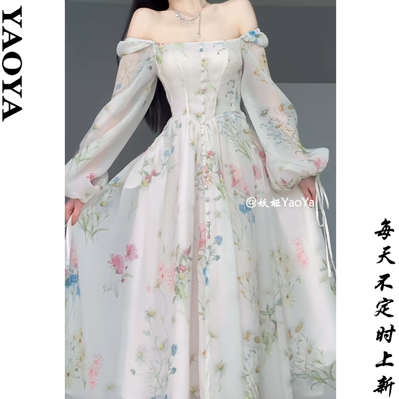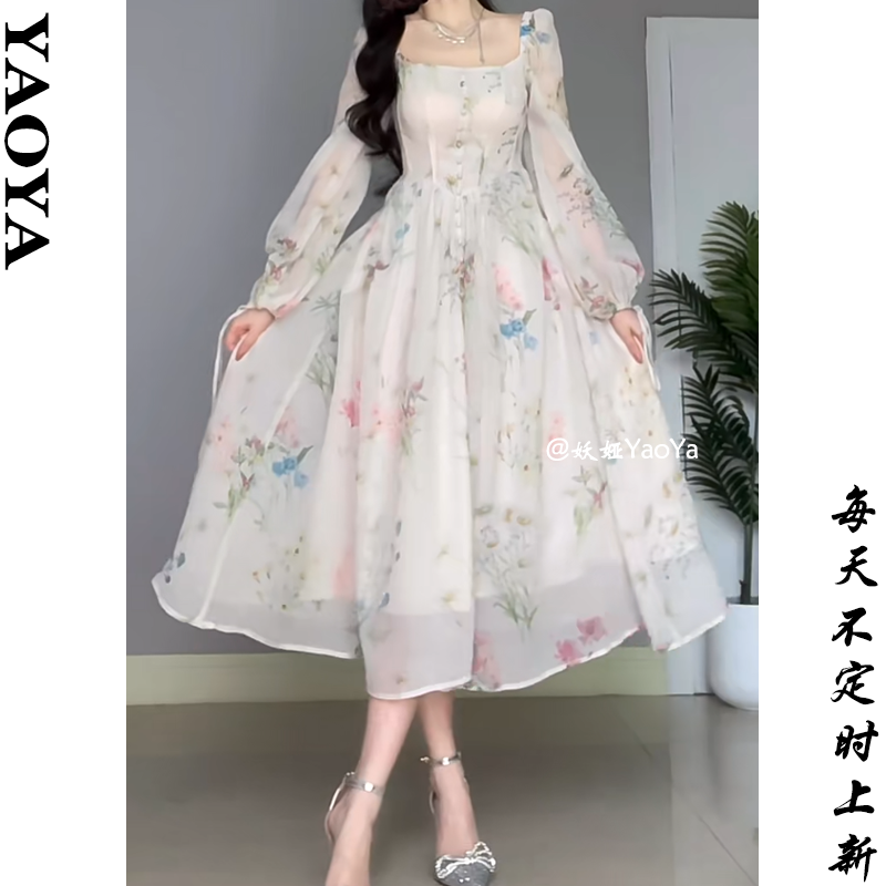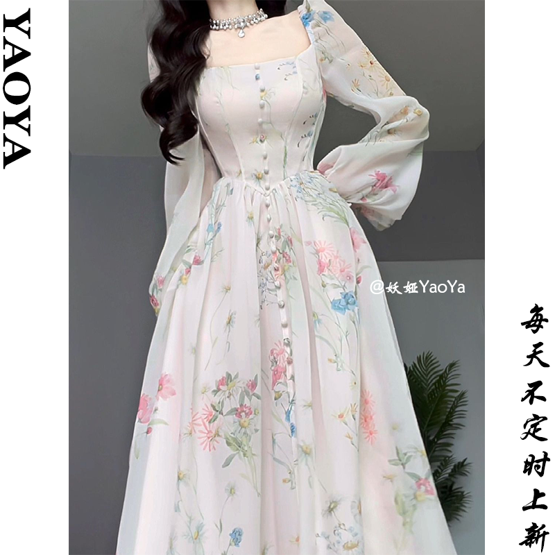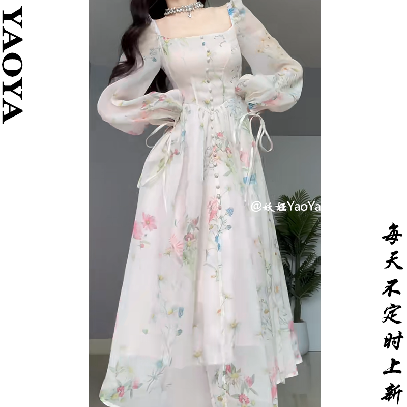 产品名称 | Product name: 林中花雨 法式碎花连衣裙女夏季鱼骨显瘦印花初恋仙女裙茶歇长裙