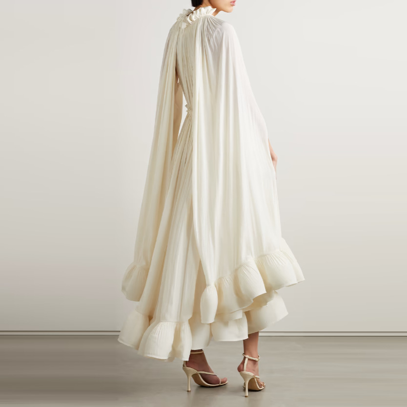 澳洲奢华斗篷式长裙2023新款性感时尚v领荷叶边气质礼服连衣裙