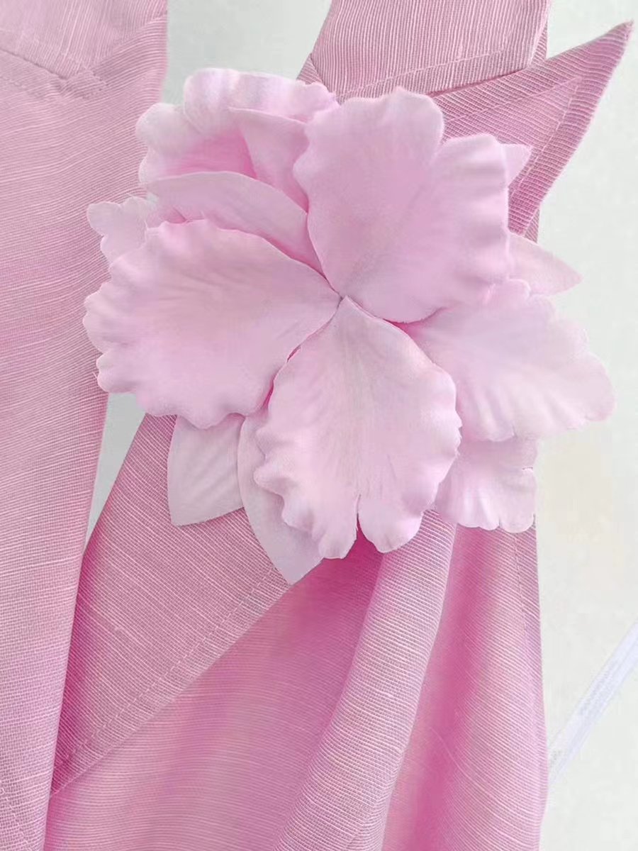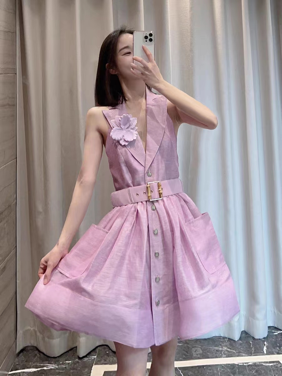 产品名称 | Product name: CiCili 澳洲小众zim2023年夏季新款真丝亚麻露西装领背挂脖连衣裙