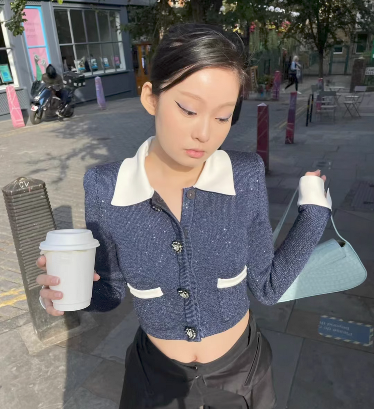 针织开衫毛衣女2023秋冬新款时尚气质洋气高级感翻领长袖短款上衣