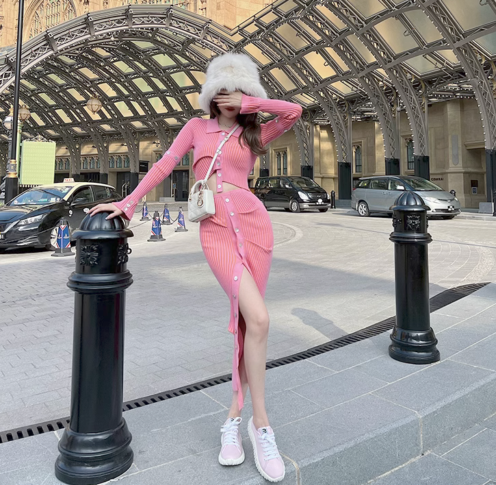 小众不规则上衣半裙双色针织套装ONLY SKIRT