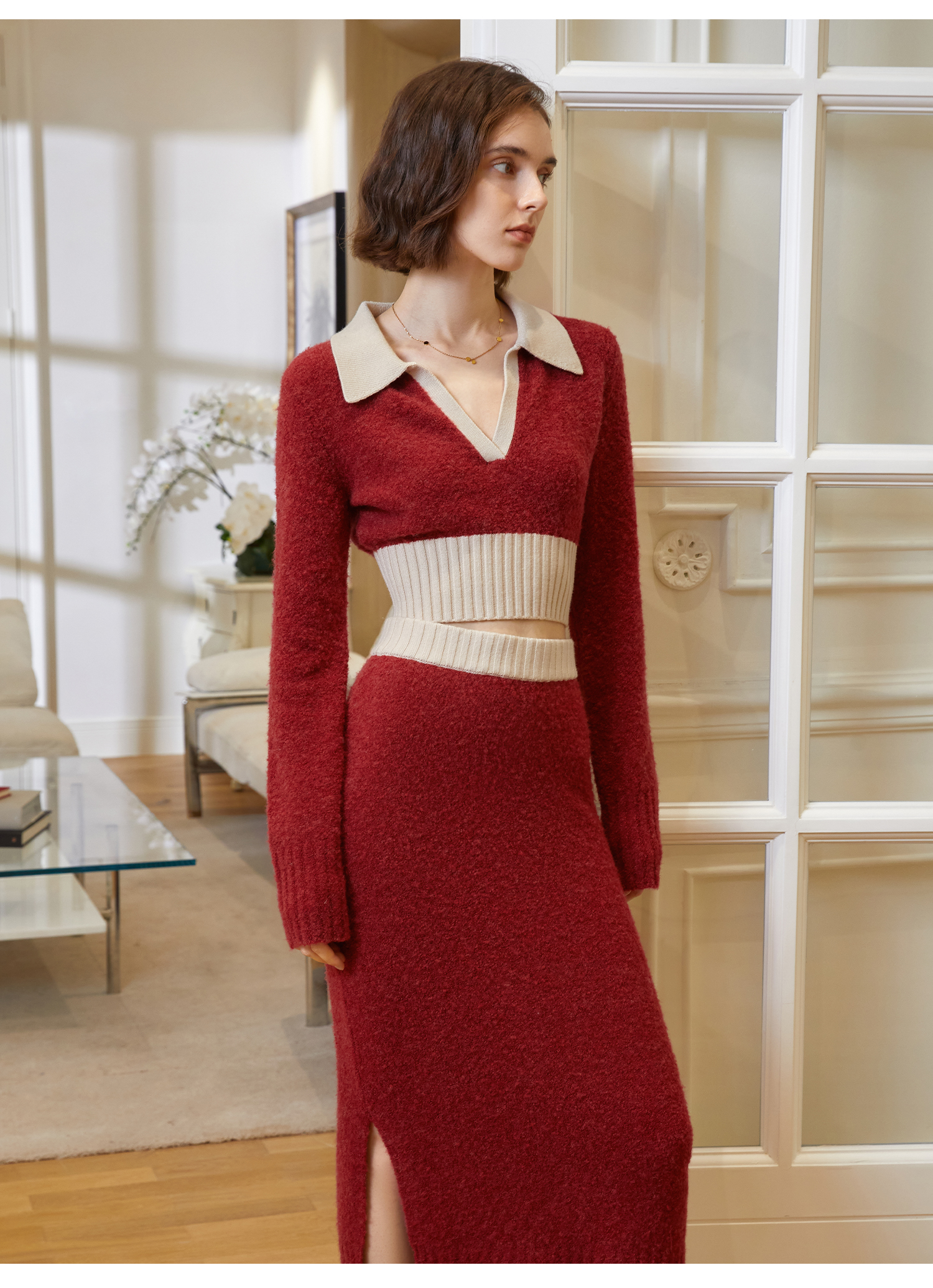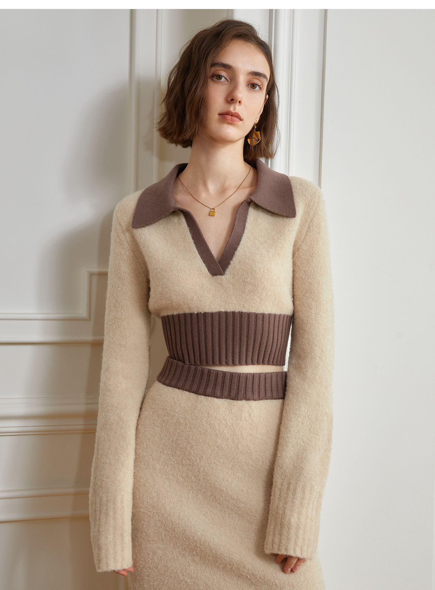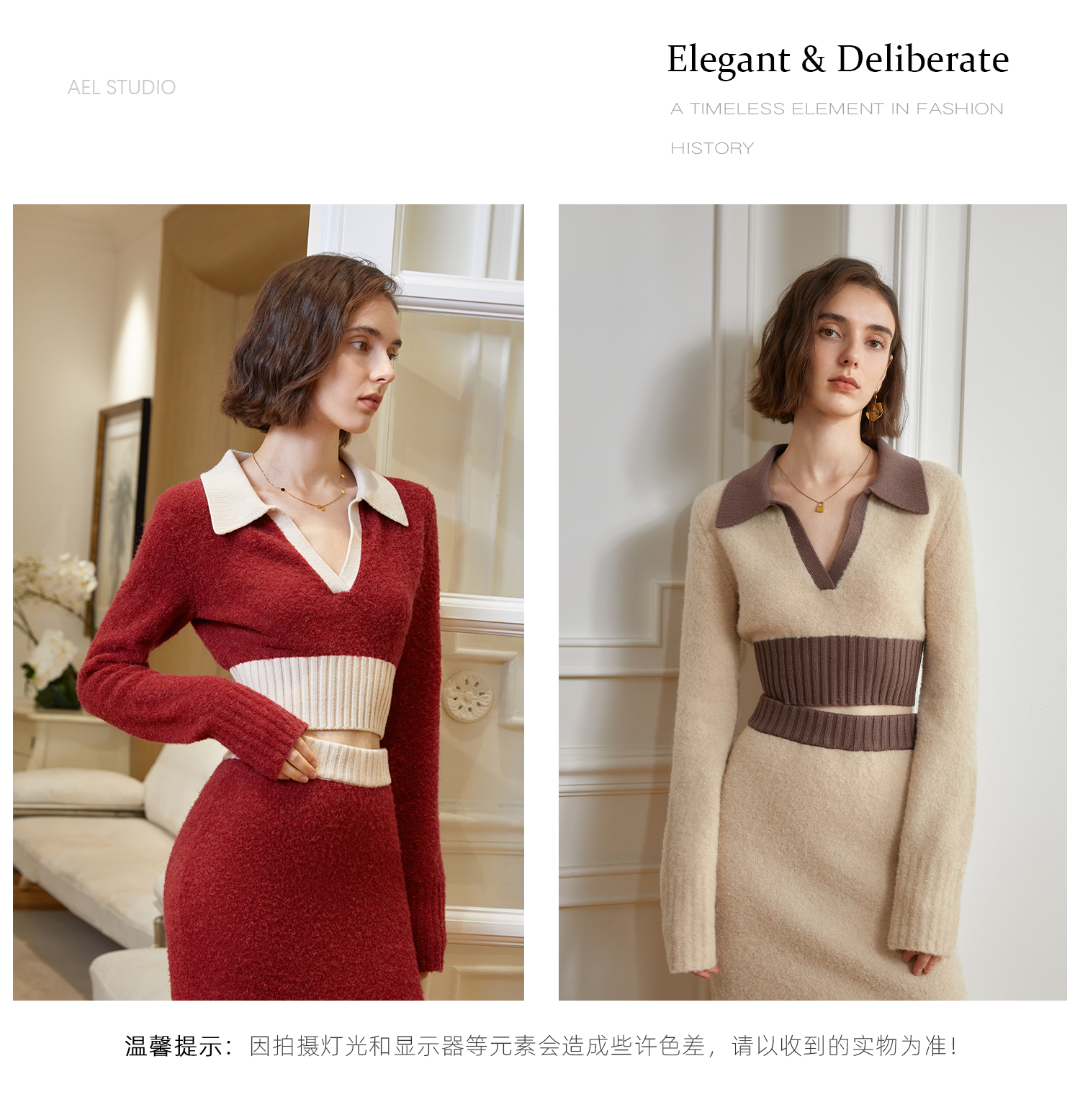 产品名称 | Product name: 原创法式温柔风拼色V领收腰毛衣套装女春季2023款套头针织上衣