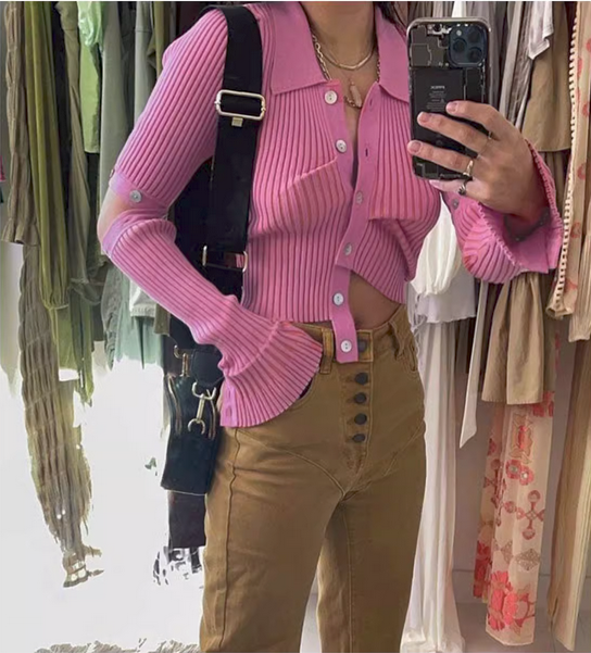 产品名称 | Product name: 不规则针织衫欧美街头纯色可拆卸长袖女秋冬性感修身单排纽扣毛衣