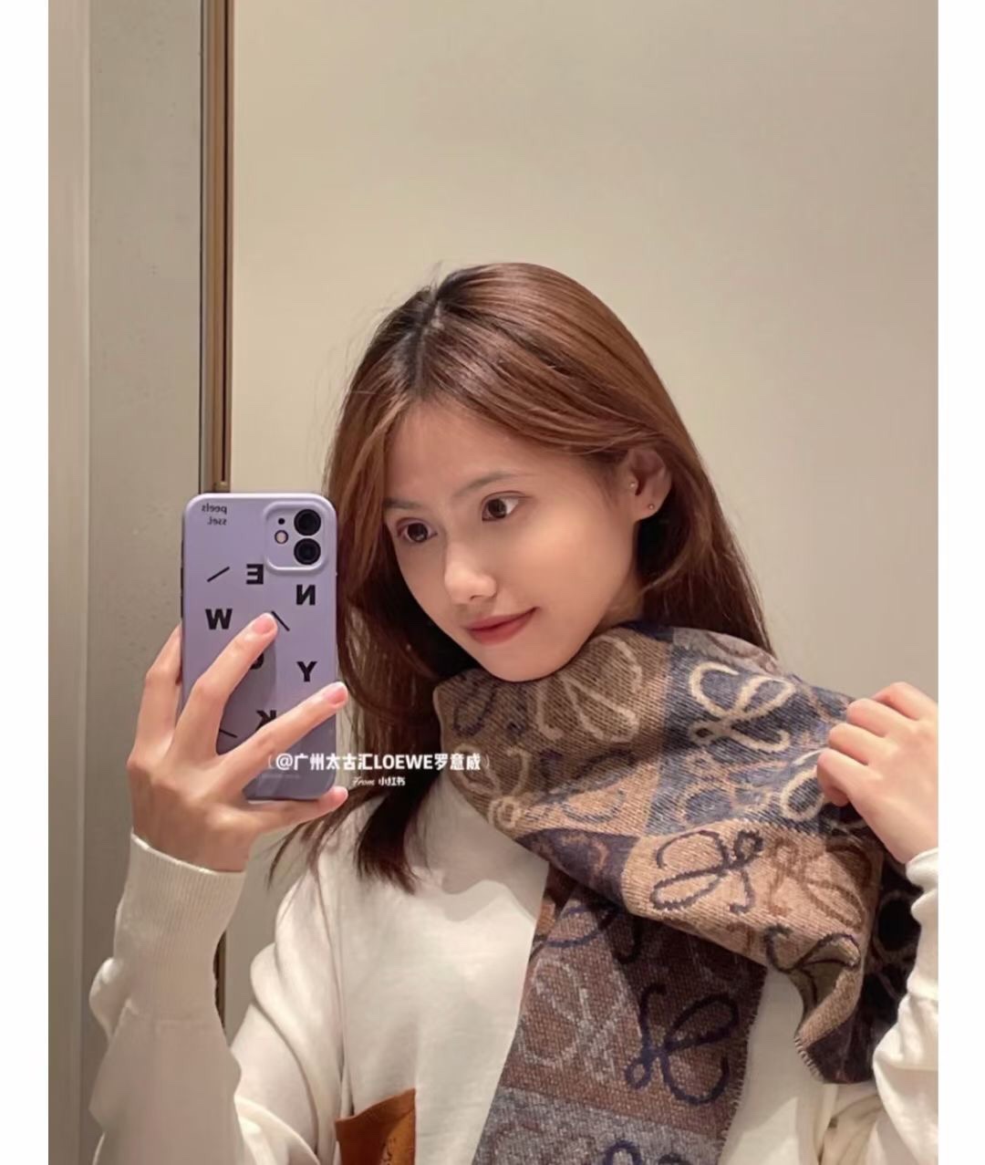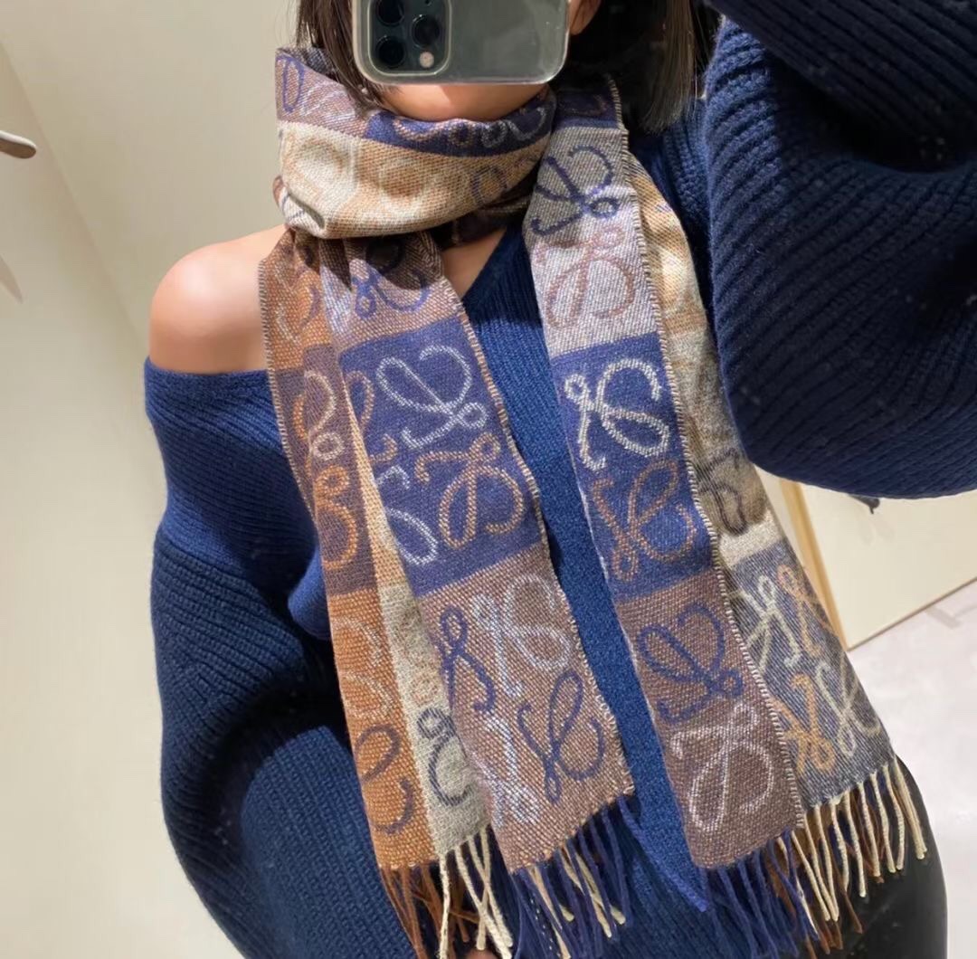 外单秋冬流苏九宫格提花羊绒围巾保暖拼色加厚女士羊羔毛小披肩